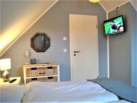 Oben: 1. Schlafzimmer mit Doppelbett 180x200 cm und Flachbild TV.