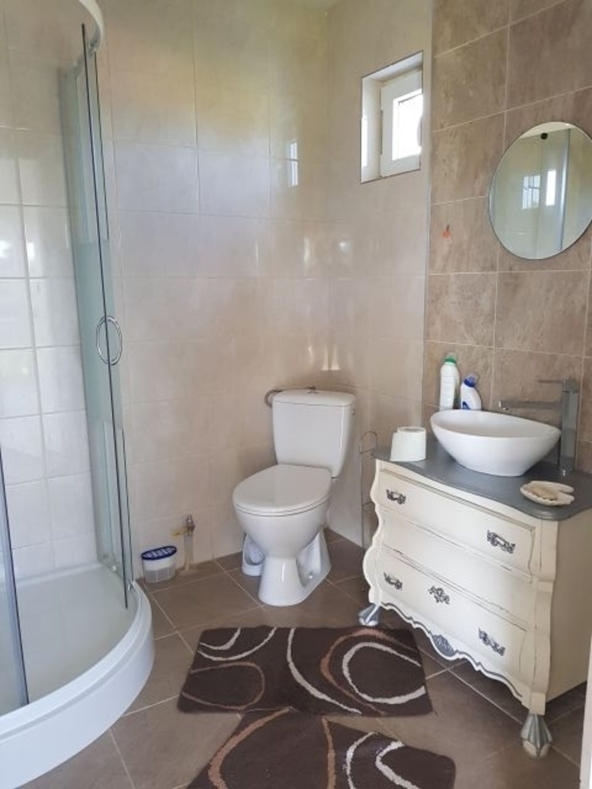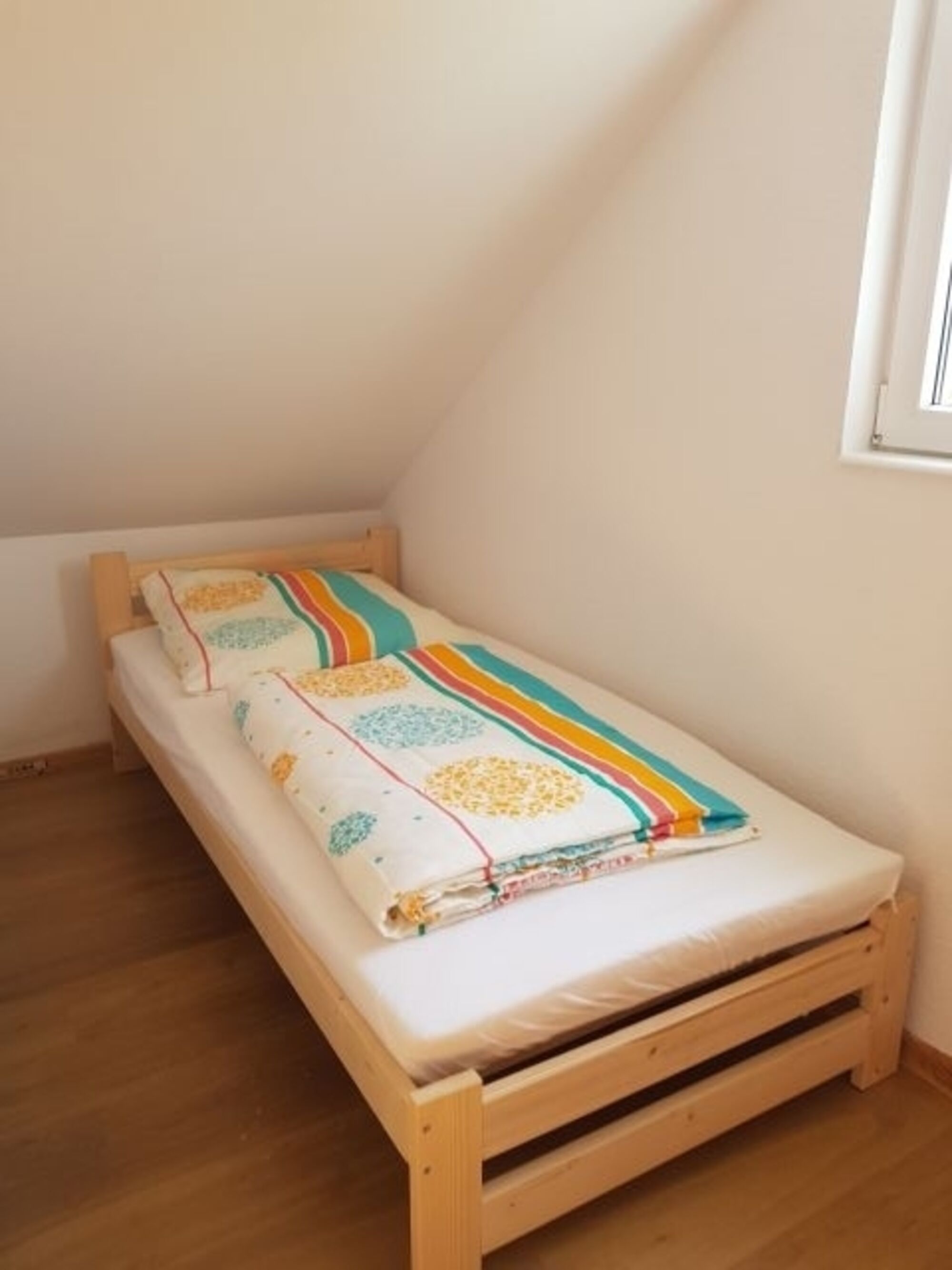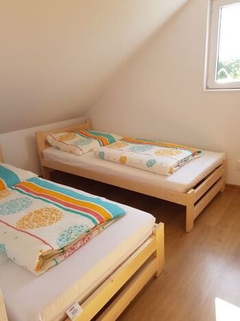ein geräumiges Bad/WC. Oben befinden sich 2 getrennte Schlafräume ( 1x Doppelbett und 2x Einzelbetten).