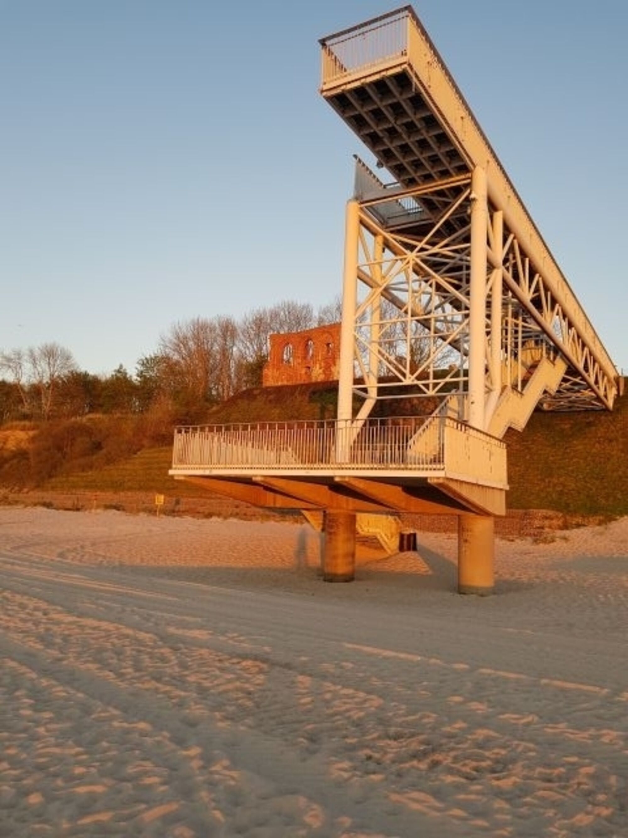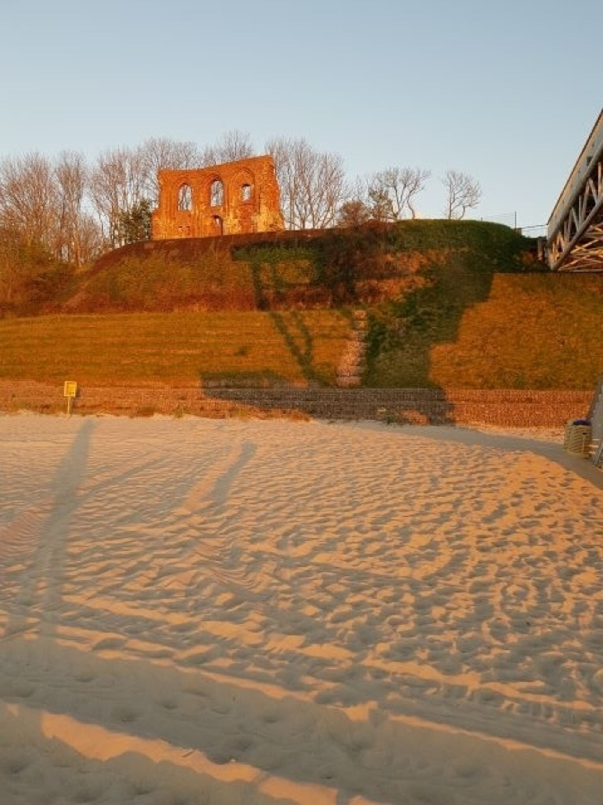 Das Haus liegt nur ca. 600 m vom Strand entfernt. Ganzjährig HUNDESTRAND. Der Weg dorthin führt über eine kleine Promenade (ca. 400 m ) mit Restaurants, Bars, Einkaufsmöglichkeiten und der Kirchenruine an der Steilküste.