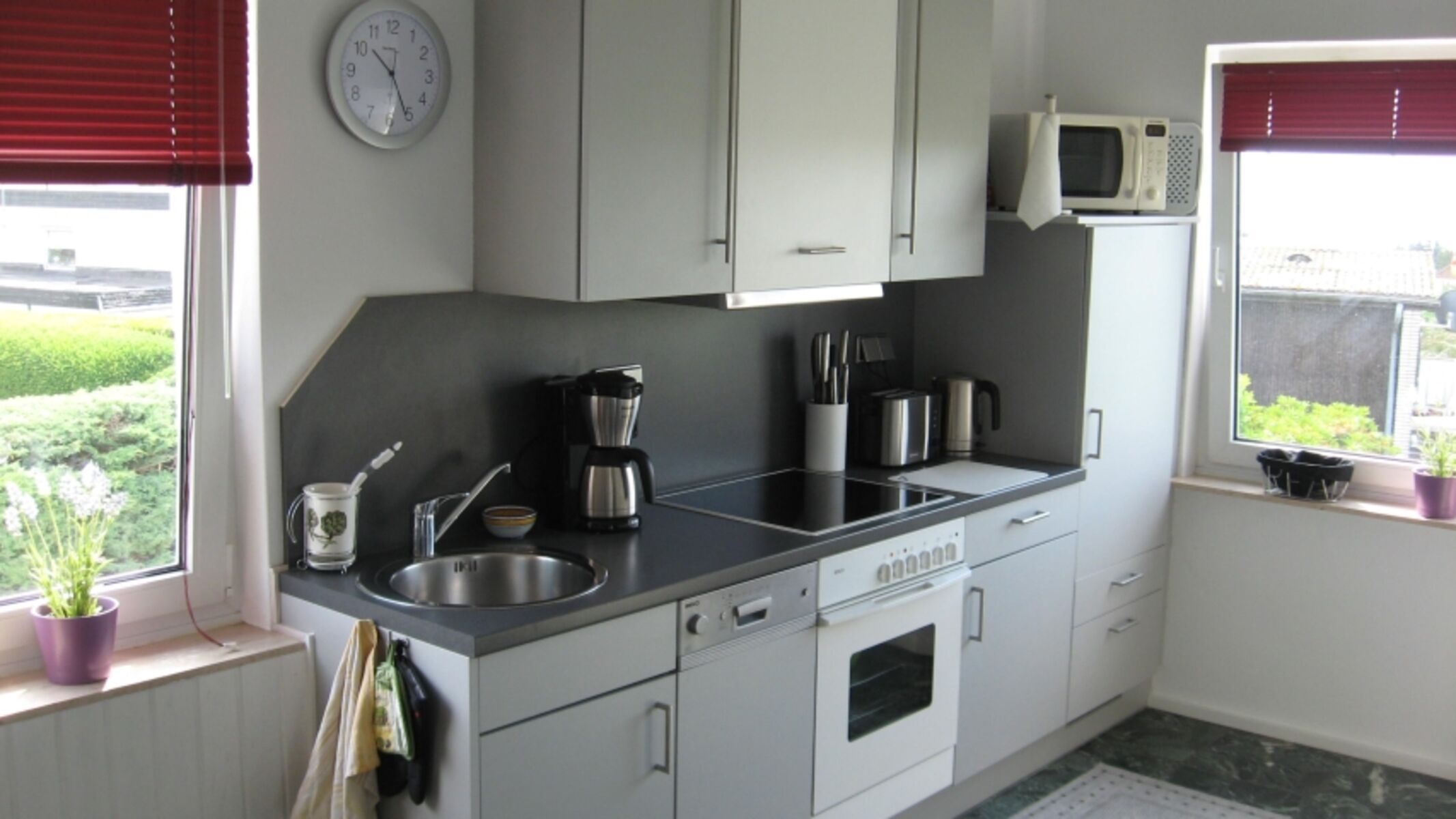Cerankochfeld, Kühlschrank mit Gefrierfach, Korkenzieher / Flaschenöffner, Geschirrhandtücher, Mülltüten