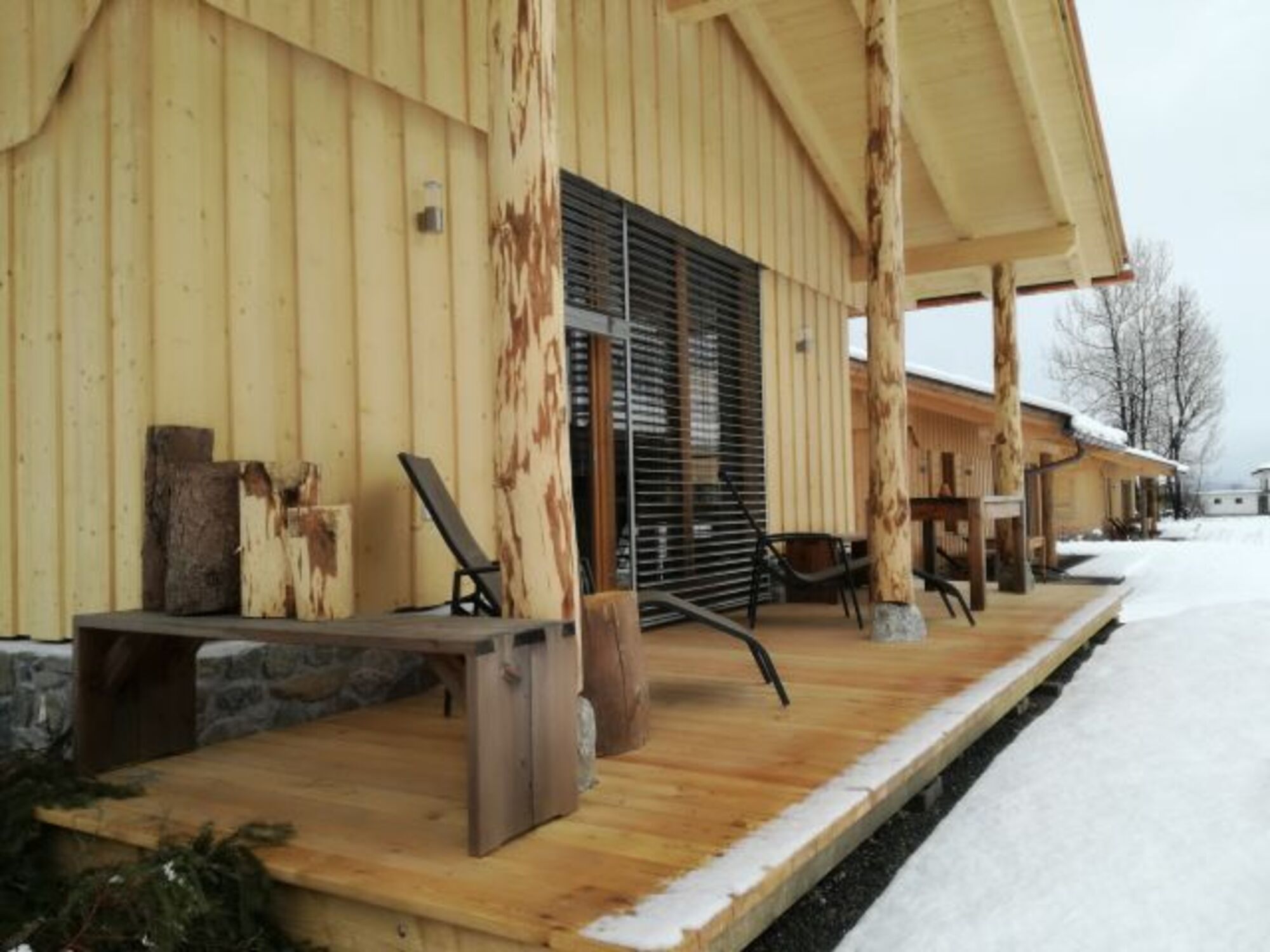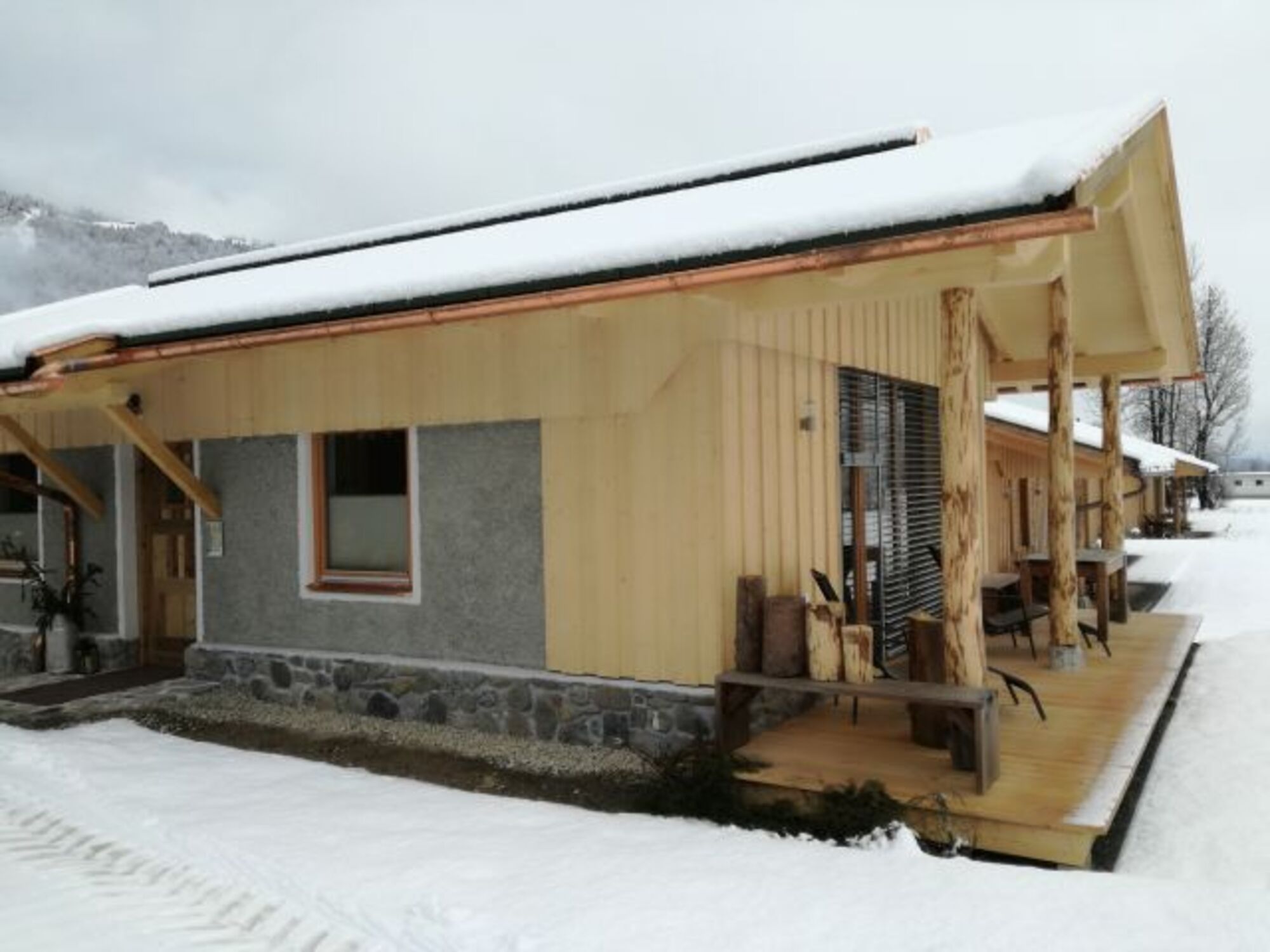 Eingebettet in eine Wiese, befinden sich nahe dem kleinen Dorf Watschig in der Region Nassfeld-Pressegger See, neun Ferienhäuser.