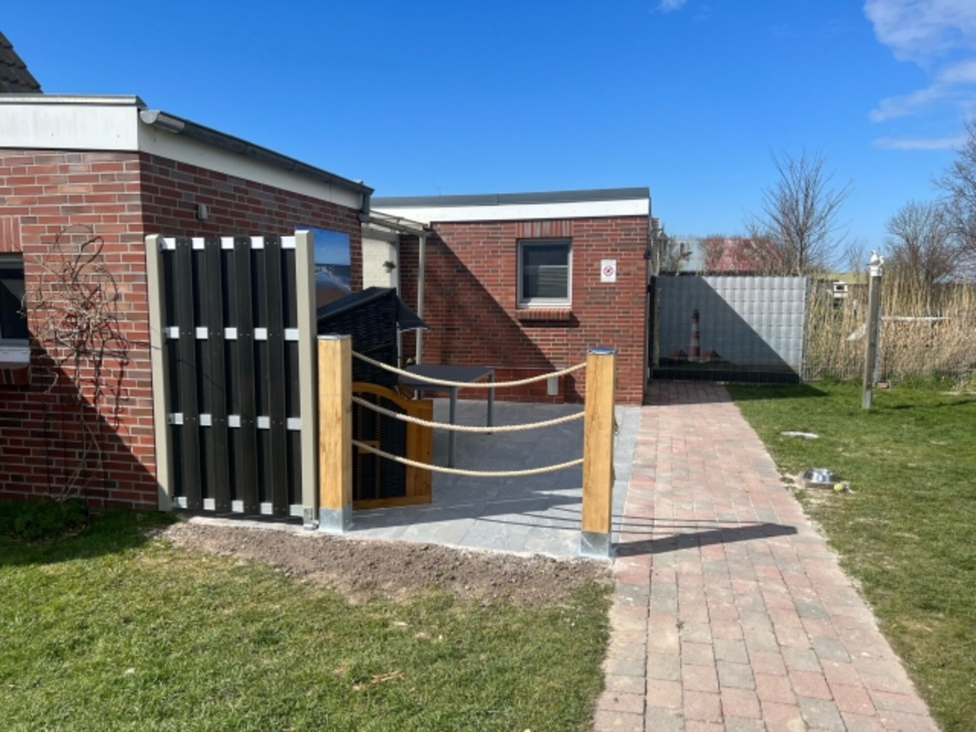 Das ist Ihr Ferienhaus 3 bis maximal 4 Personen für einen ruhigen, erholsamen Urlaub mit Ihren Hunden. Auf ca. 70 qm Wohnfläche und einem vollständig eingezäunten Garten, einer Terrasse mit Strandkorb und ein überdachter Eingangsbereich, in dem es sich auch bei Regen gemütlich sitzen lässt, ist hier alles auf wunderschönen Urlaub eingestellt. Und es sind nur 15 Gehminuten am oder auf dem Deich entlang bis zur Nodsee.