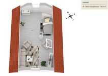 1 kombiniertem Wohn-Schlafzimmer (DG)