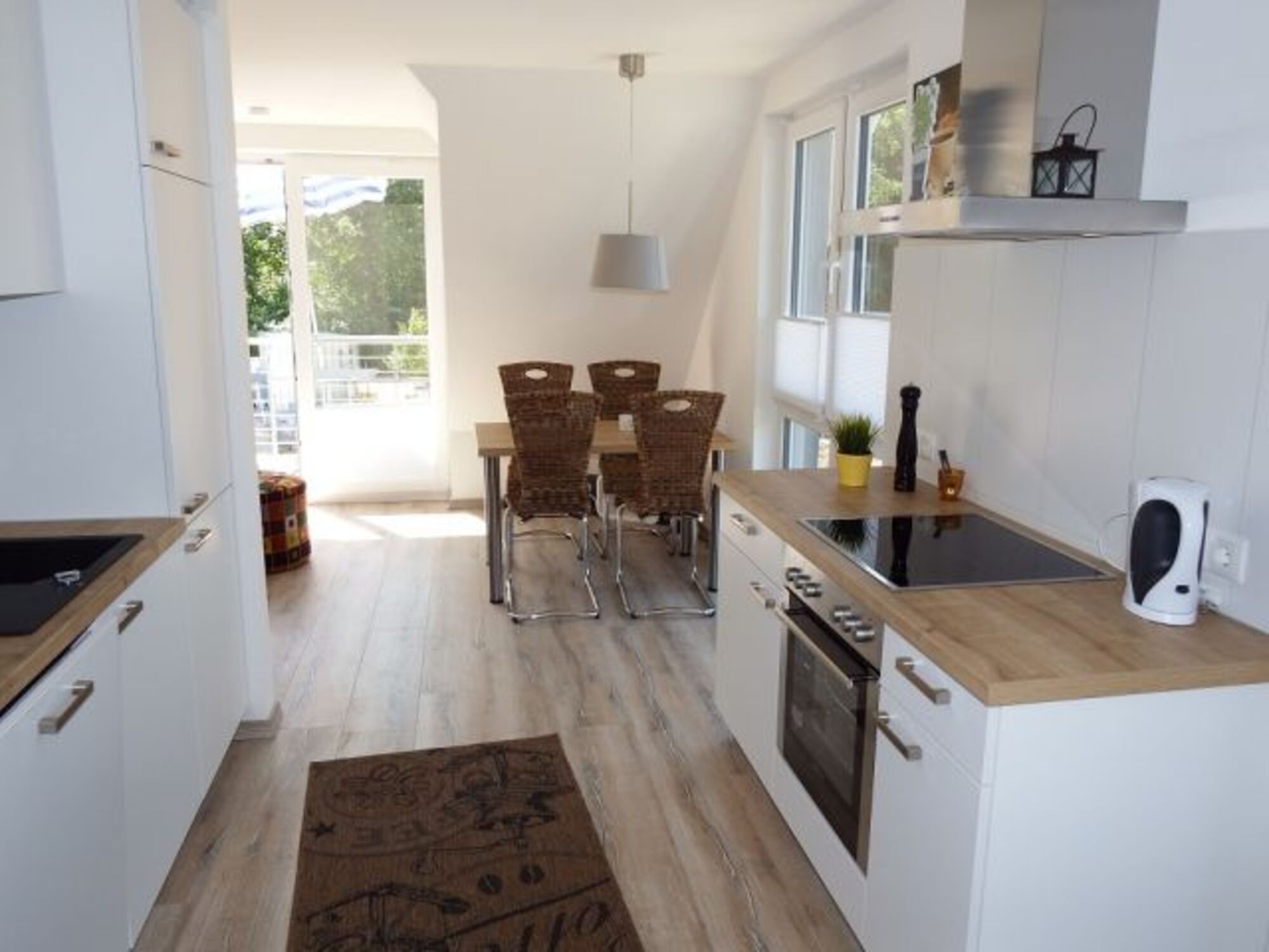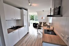 Die moderne offene Küchenzeile ist großzügug Ausgestattet und lädt zum gemeinsamen Kochen und Klönen ein.