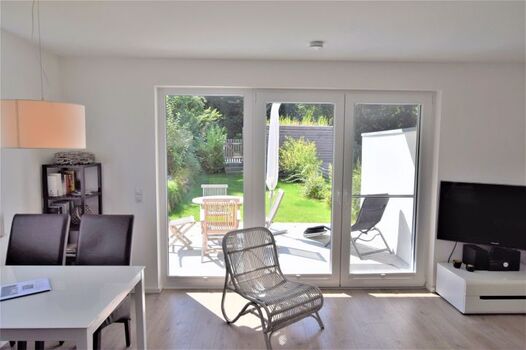Ebenerdig gelegene und hochwertig eingerichtete 3-Zimmer-Ferienwohnung mit Terrasse und kleinem Garten.
