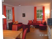 Die Wohnung Nr. 1 liegt im Erdgeschoß und hat direkten Zugang zum Gästegarten. Sie hat ein sehr großes, hell eingerichtetes Wohnzimmer, mit großem Essbereich und einer gemütlichen Coucecke. Das große Schlafzimmer hat 1 Doppelbett + 1 Einzelbett, im kleinen Schlafzimmer steht ein Doppelbett.