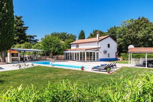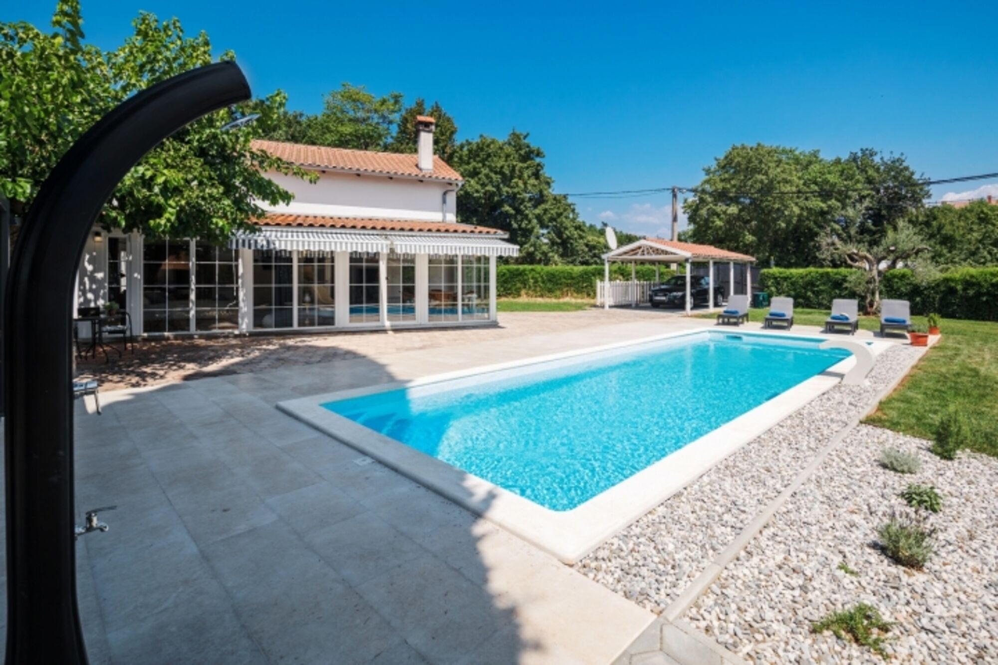 Villa Mira 4+2 Personen 106 m², großer Garten und Pool, 2 Schlafzimmer, 2 Duschbäder, Klima, Terrasse, WiFi, überdachte Sommerküche mit Grillbereich, Carport, Nähe Poreč