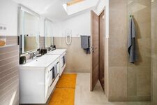 Doppelwaschbecken, Spiegel, Fenster im Bad