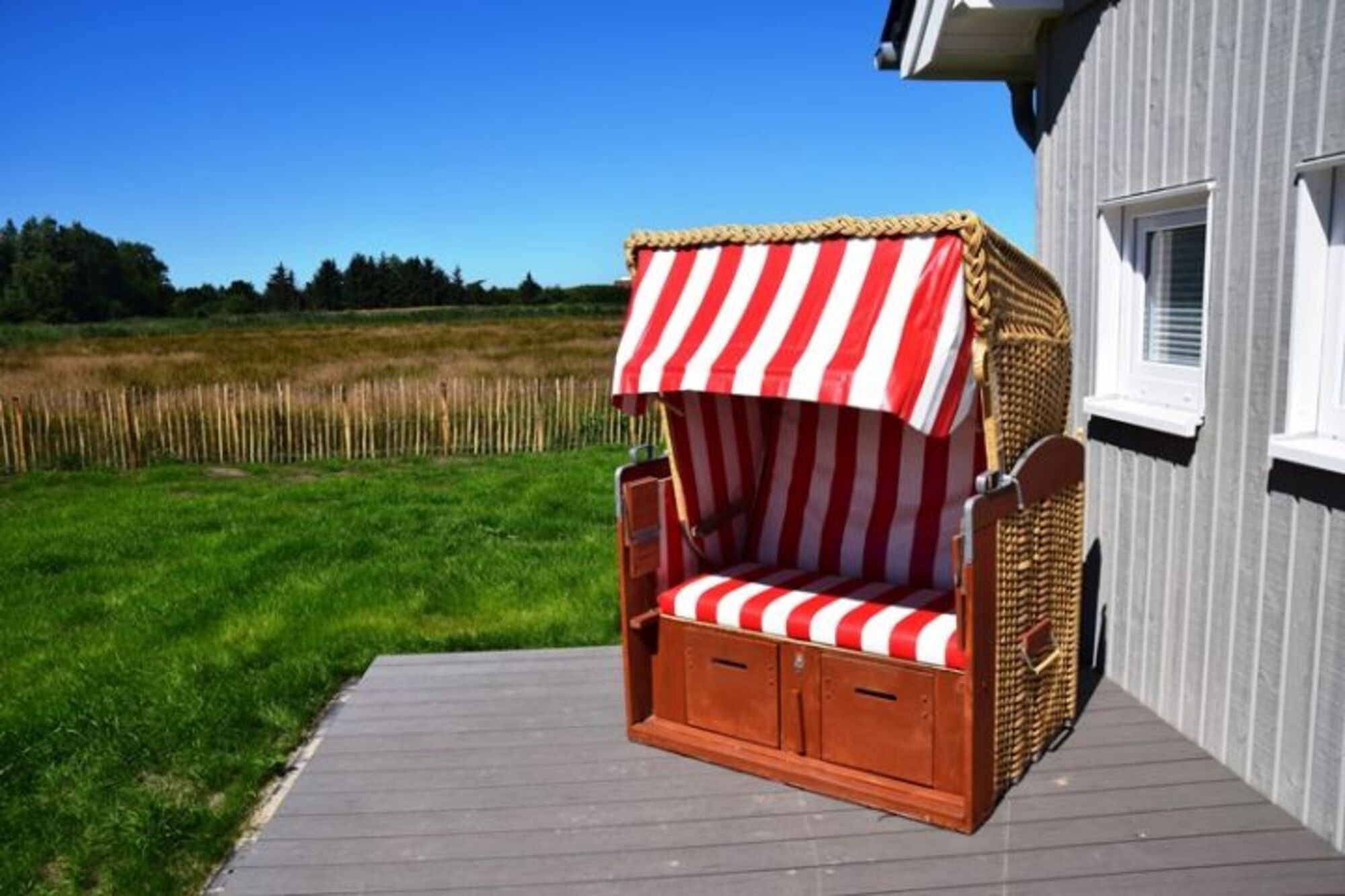 Ostsee Ferienhaus Tüterbüdel mit WLAN, Strandkorb am Haus