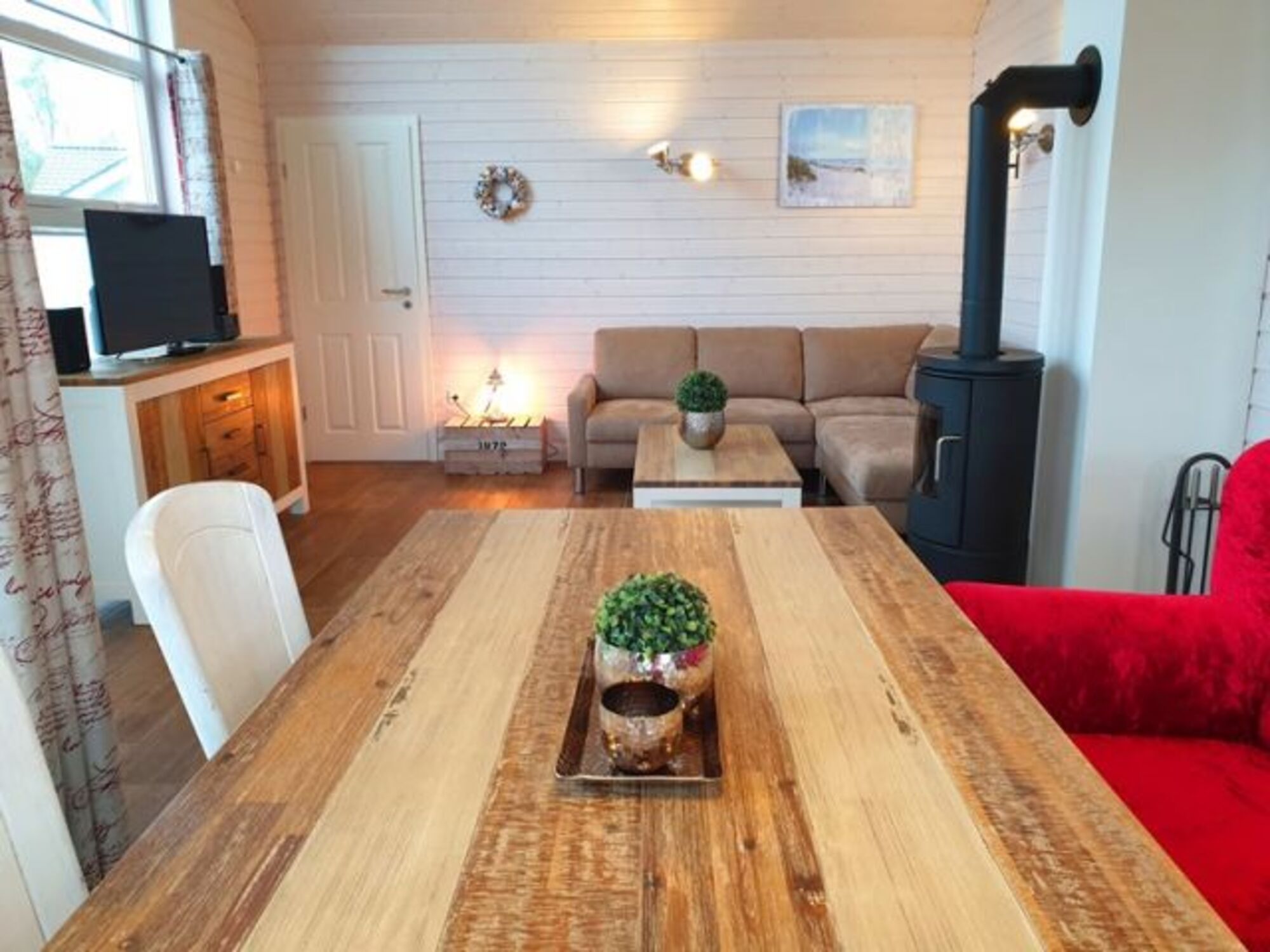 Zusatzausstattung: Waschmaschine, Bügeleisen, Bügelbrett, Sky-TV, 3 Flachbildschirm-Fernseher, Mini-Stereoanlage (CD/Radio), WLAN, Fußbodenheizung, Kaminofen, Kinderreisebett mit separater Matratze, Hochstuhl, Bücher, Spiele, Sauna