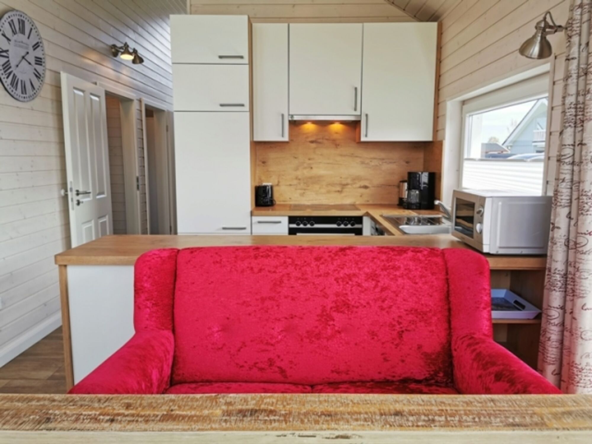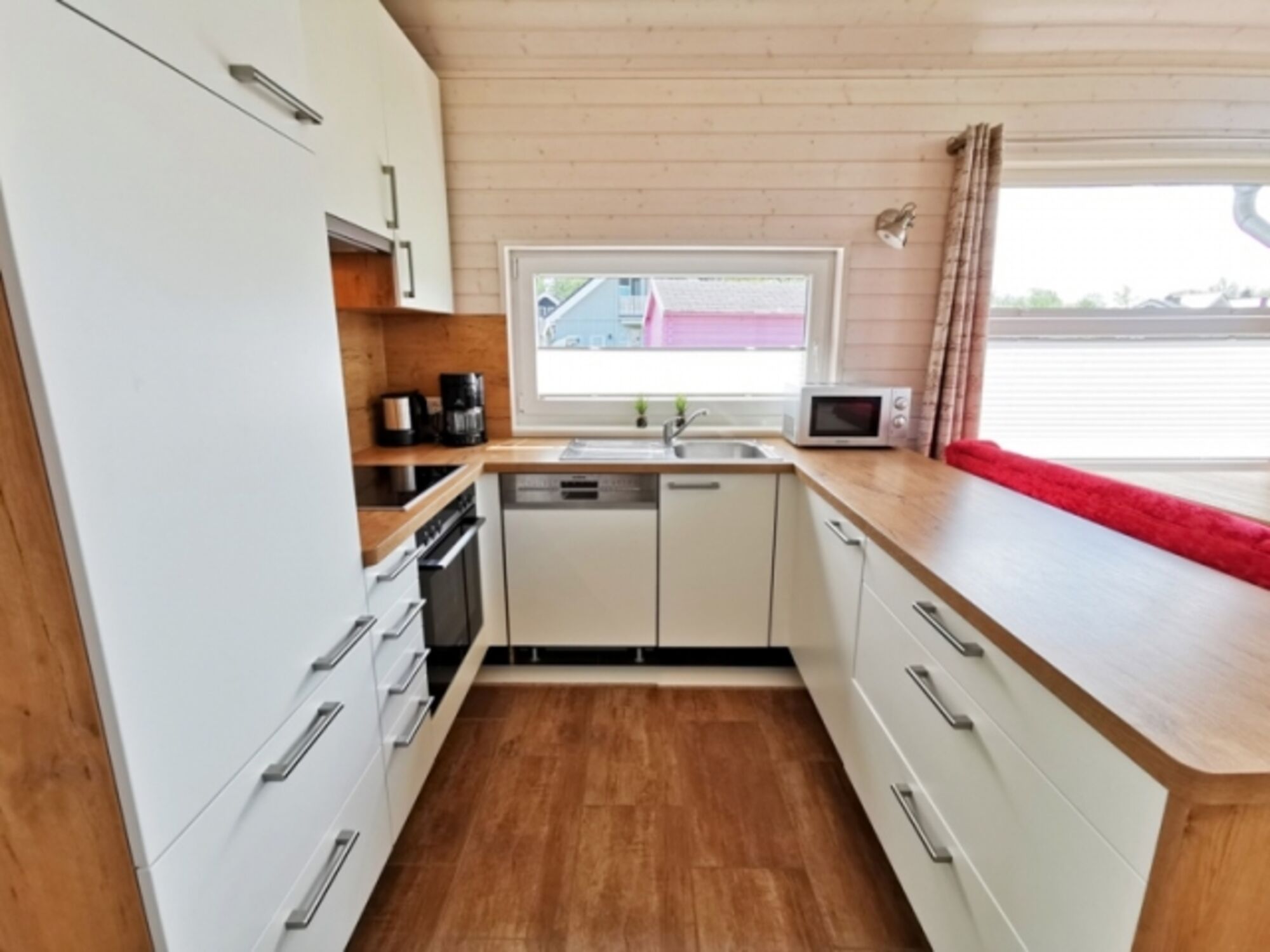 Küche: komplett eingerichtet u.a. mit Mikrowelle, Ceran-Kochfeld, Umluftbackofen, Toaster, Kaffeemaschine, Spülmaschine, Kühlschrank mit Gefrierfach, Wasserkocher, Dunstabzugshaube
