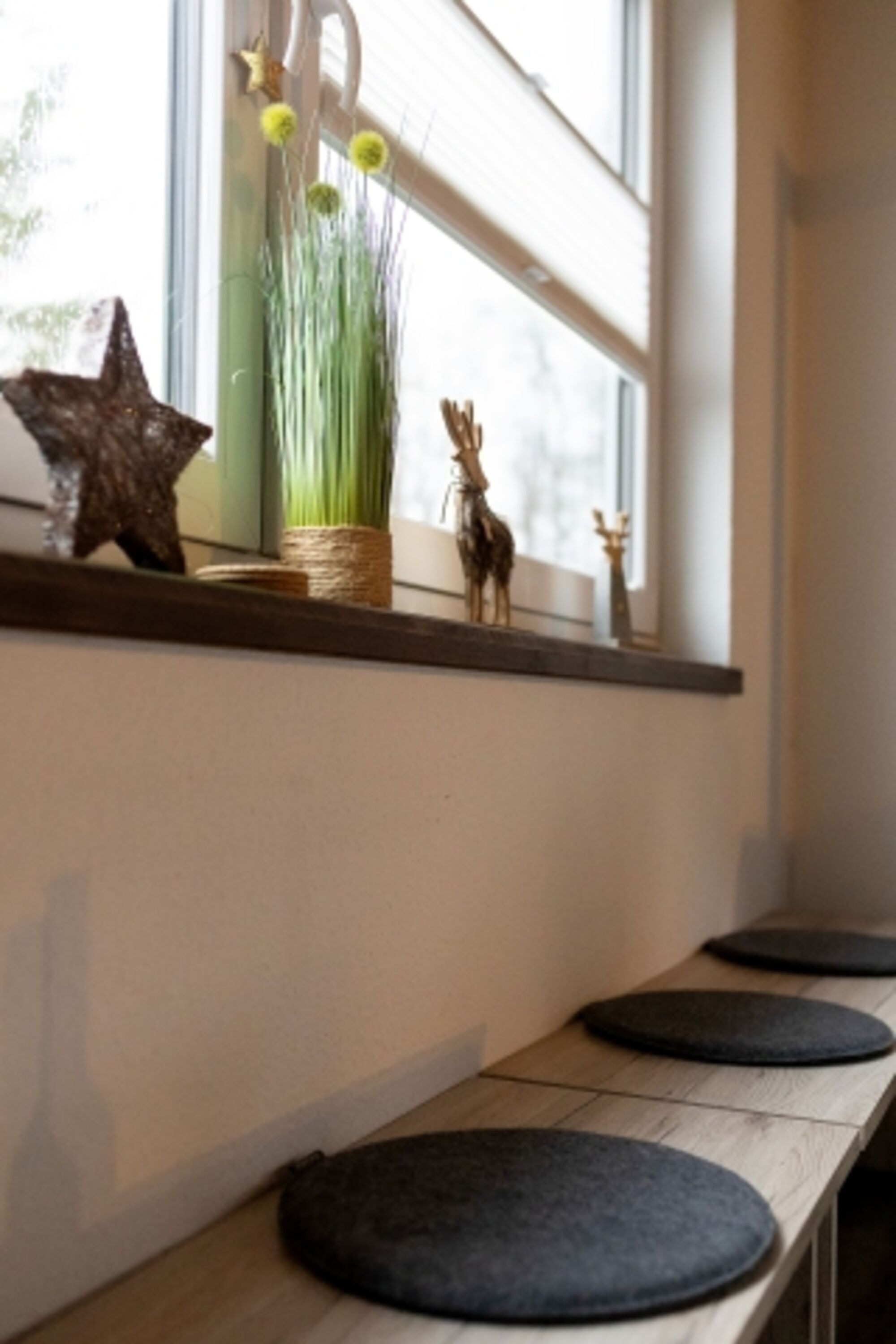 Das Ferienhaus verfügt über einen Wohn-Essraum, eine Küche, ein Tageslichtduschbad, einen kleinen Hauswirtschaftsraum und 2 getrennte Schlafzimmer im Obergeschoss.