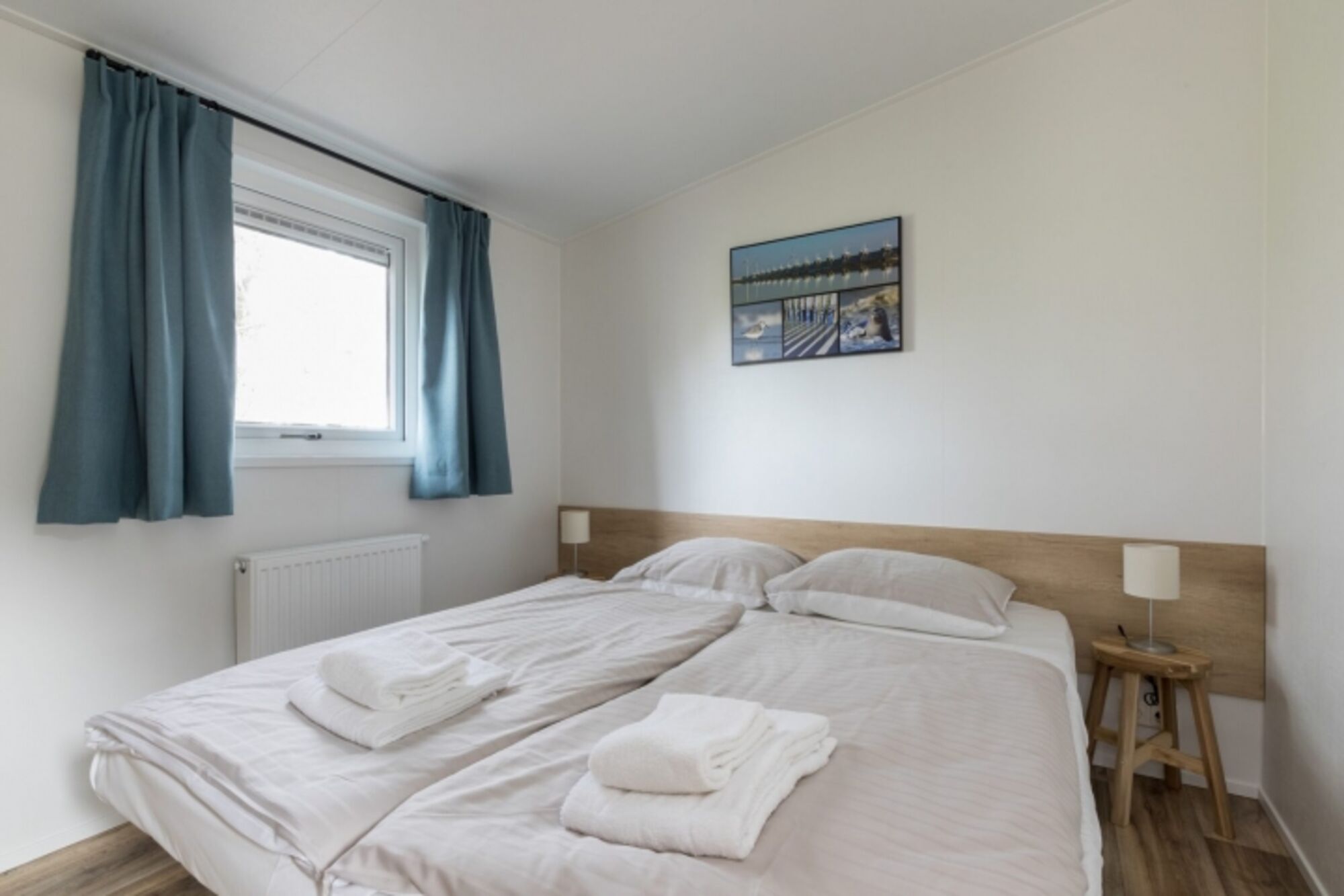 Verbringen Sie Ihren Urlaub in diesem brandneuen Chaletpark! Von der Veranda aus betreten Sie das Chalet, in dem jeder Komfort und jeder Luxus vorhanden ist. Das Wohnzimmer mit Sitzecke und Essbereich bietet viel Platz und einen schönen Blick auf Ihre Terrasse und den Park. Die Küche verfügt über Geschirrspüler, Kombimikrowelle, Kühlschrank mit Gefrierfach, Kaffeemaschine und Wasserkocher. Es gibt zwei Schlafzimmer: eines mit einem Doppelbett und das andere mit zwei Einzelbetten. Das Badezimmer ist mit Dusche, WC und Waschbecken ausgestattet. Die Veranda lädt Sie ein, sich unter der Markise zu entspannen oder den Park zu entdecken.