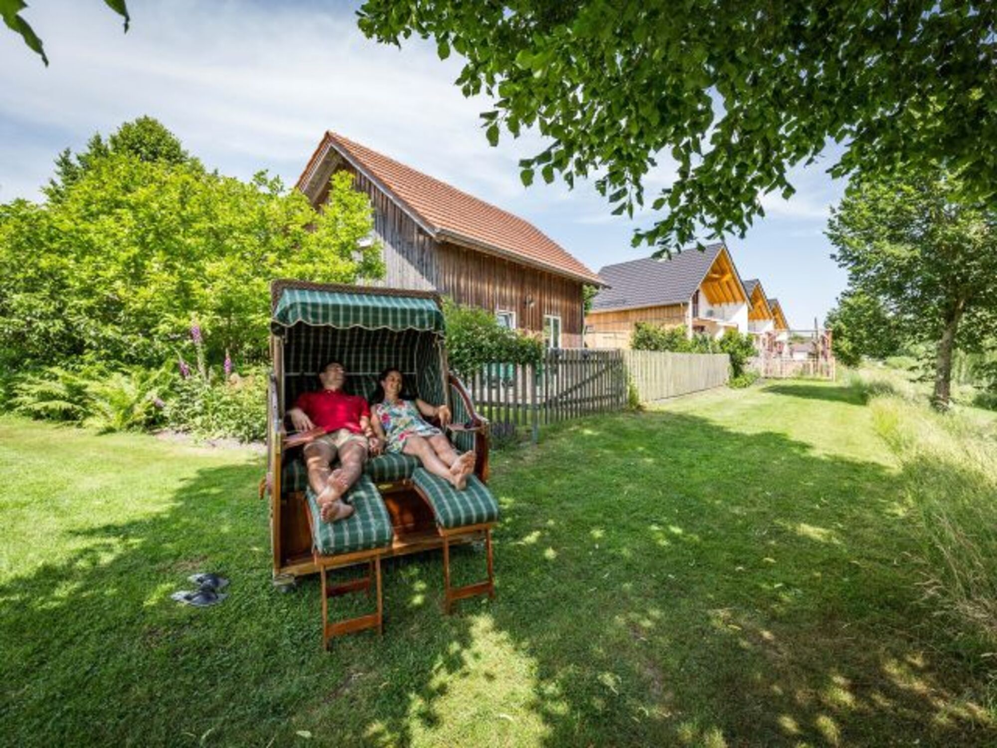 Die geräumigen Holzhäuser mit 99qm Wohnfläche verfügen über einen großzügigen Wohnraum mit separater Küchenzeile und Essecke, zwei Schlafzimmer, zwei Badezimmer und ein separates WC. In den Schlafzimmern ist eine zusätzliche Aufbettung für eine bzw. zwei weitere Personen ohne Problem möglich.