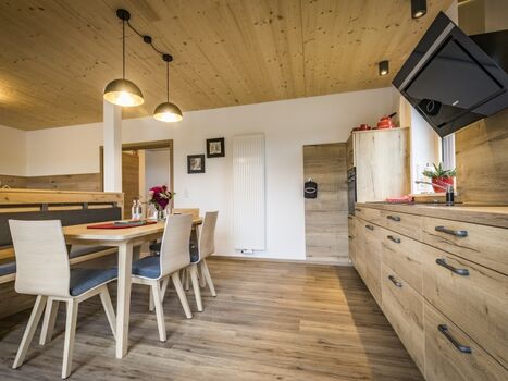 Cerankochfeld, Dunstabzugshaube, Kühlschrank mit Gefrierfach, Gefrierschrank, Nespresso-Automat, Eierkocher, Mixer, Korkenzieher / Flaschenöffner, Gewürze (Salz, Pfeffer, Zucker), Öl / Essig, Geschirrhandtücher, Mülltüten, Essplatz in der Küche, TV in der Küche