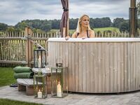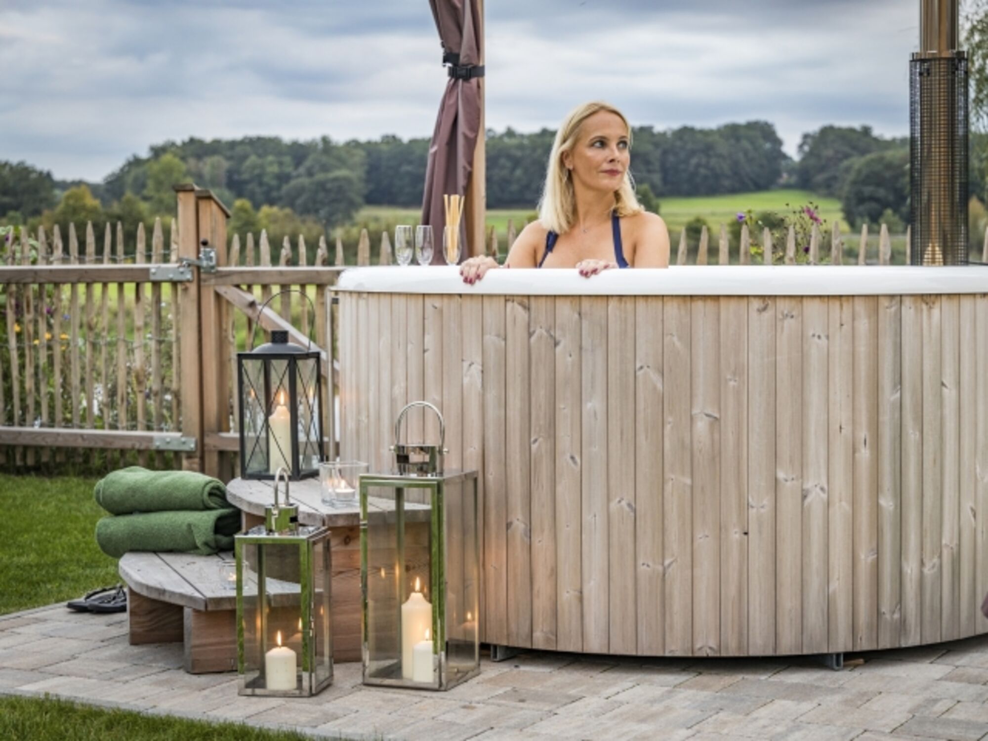 Für eine erholsame Auszeit ist ein Holzbadezuber im Garten geplant. Dieser Zuber lässt sich ganz einfach, mit dem von uns bereitgestelltem, Holz selbst heizen.