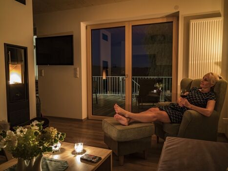 TV, TV-Sat, SMART-TV, TV-Flachbildschirm, HDTV Flachbildschirm, Bücher, Kaminofen, Eckcouch, Sessel, Fliegengitter