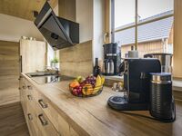 Cerankochfeld, Dunstabzugshaube, Kühlschrank mit Gefrierfach, Gefrierschrank, Nespresso-Automat, Eierkocher, Mixer, Korkenzieher / Flaschenöffner, Gewürze (Salz, Pfeffer, Zucker), Öl / Essig, Geschirrhandtücher, Mülltüten, Essplatz in der Küche, TV in der Küche