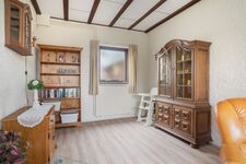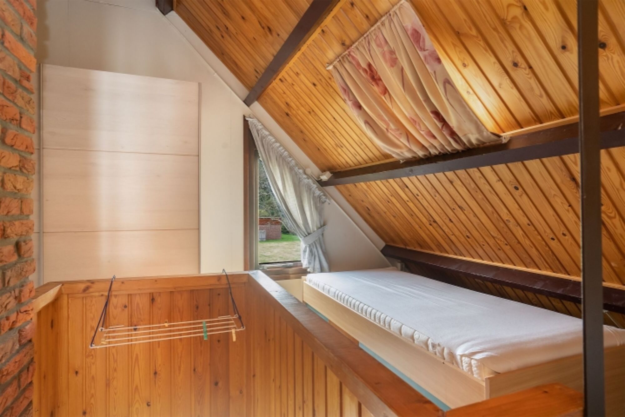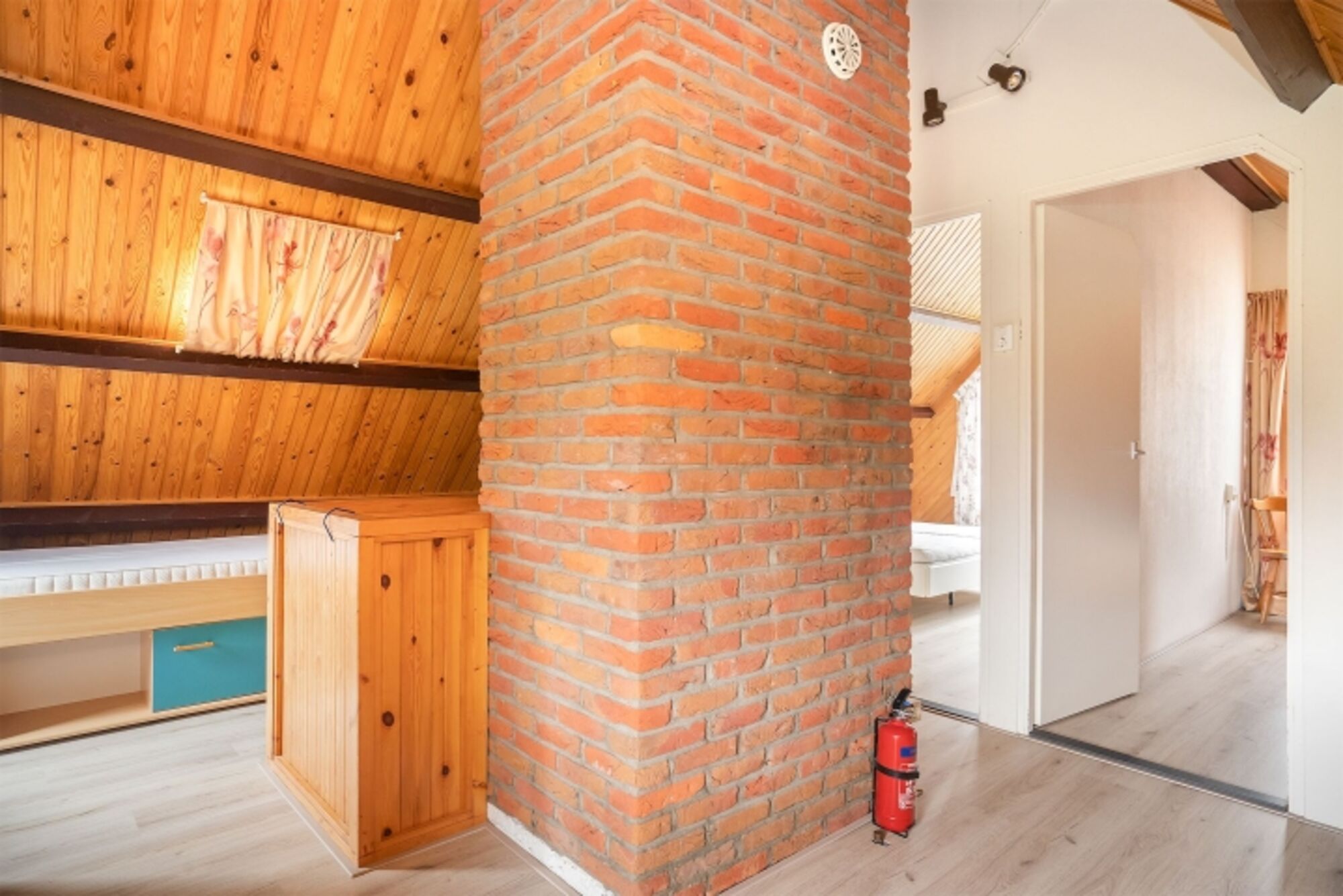 Im Obergeschoss befinden sich zwei weitere komfortable Schlafzimmer. Das erste Schlafzimmer verfügt über ein Doppelbett, einen kleinen Schminktisch und einen Kleiderschrank. Das zweite Schlafzimmer ist mit einem Einzel-Boxspringbett und einer Kommode ausgestattet. Auf dem geräumigen Flur stehen zwei zusätzliche Einzelbetten; eines davon ist ein Boxspringbett, das andere hat praktische Schubladen darunter. Ein Ventilator steht für warme Tage zur Verfügung. Zusätzlich gibt es hier ein klappbares Kinderbett mit Matratze und Bettwäsche.