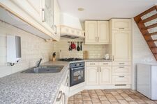 4-Platten Herd, Gasofen / Gasherd, Dunstabzugshaube, Gefrierschrank, Essplatz in der Küche