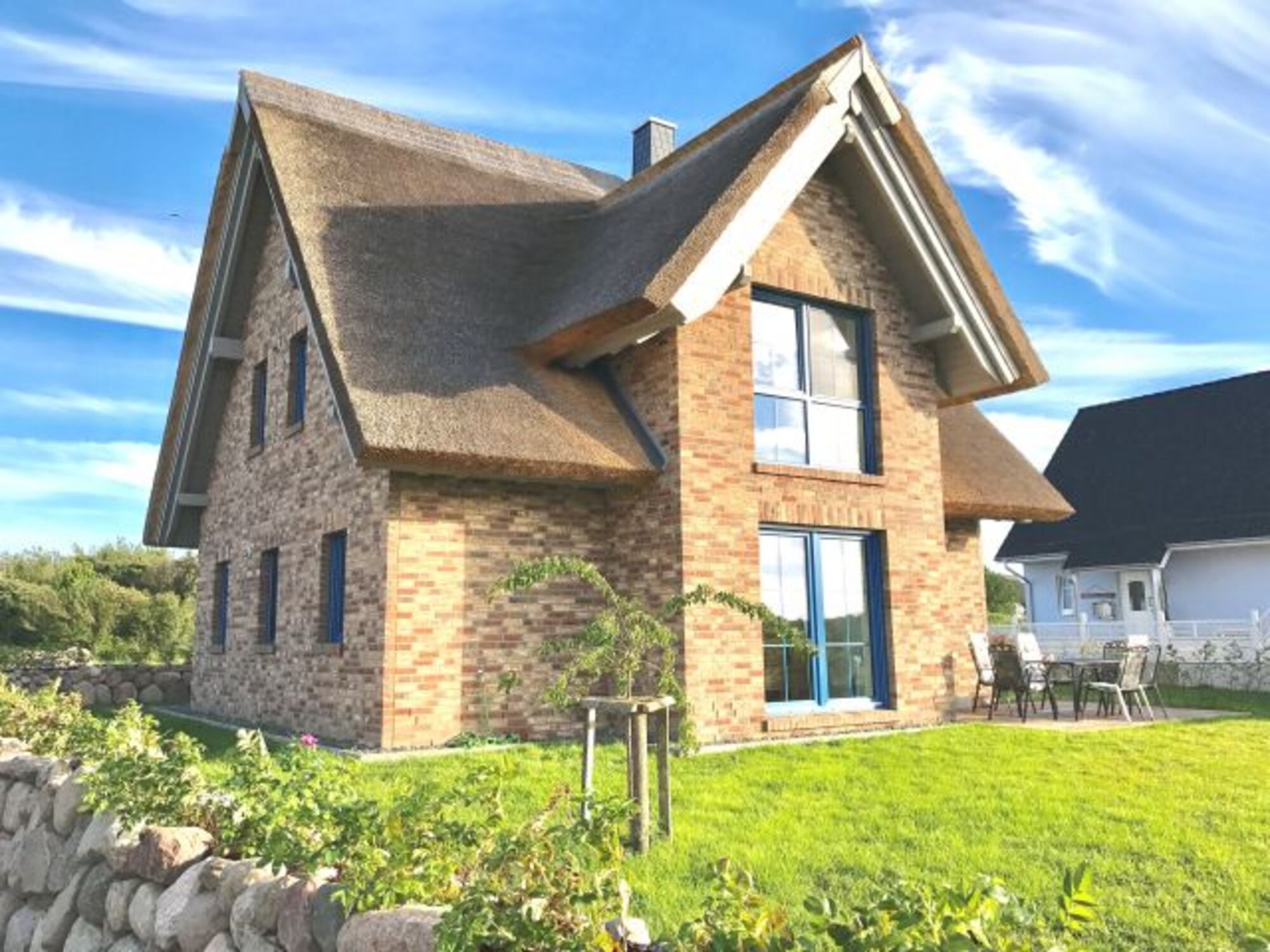 Unser Reethaus „Strandgut“ auf Rügen wurde im Jahr 2016 neu erbaut und bietet auf 500 qm Grundstück und 120 qm Wohnfläche viel Platz sowohl für Familien, Mehrgenerationen, Paare und romantische Zweisamkeit.