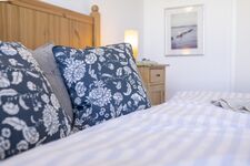 Seitlicher Meerblick Doppelbett mit zwei Matratzen; Maße jeweils 1,00 x 2,00m Kindernische mit Kindertisch, festem Kinderbettchen (1,20 x 0,70m), Einschlaflicht, Büchern und Spielzeug Doppelbett 2,00 x 2,00m, Kommode, Leselampe am Bett
