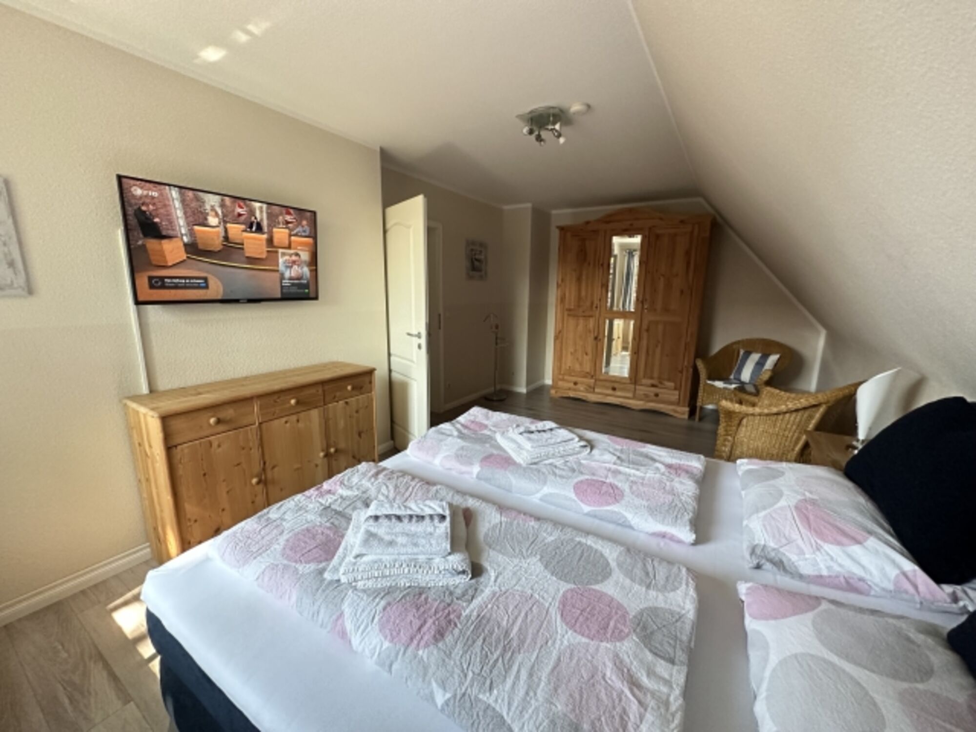 2 Schlafzimmer mit je einem großen Doppelbett (180x200, mit Topper) 1x 40 Zoll TV