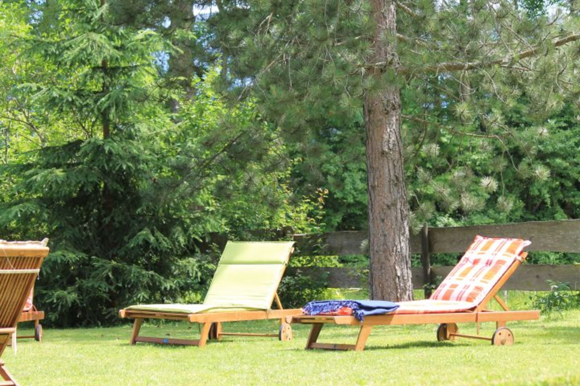 Im großen Garten finden Sie mehrere Sitzgelegenheiten, wie auch eine Liegewiese und einen Spielplatz für Kinder.