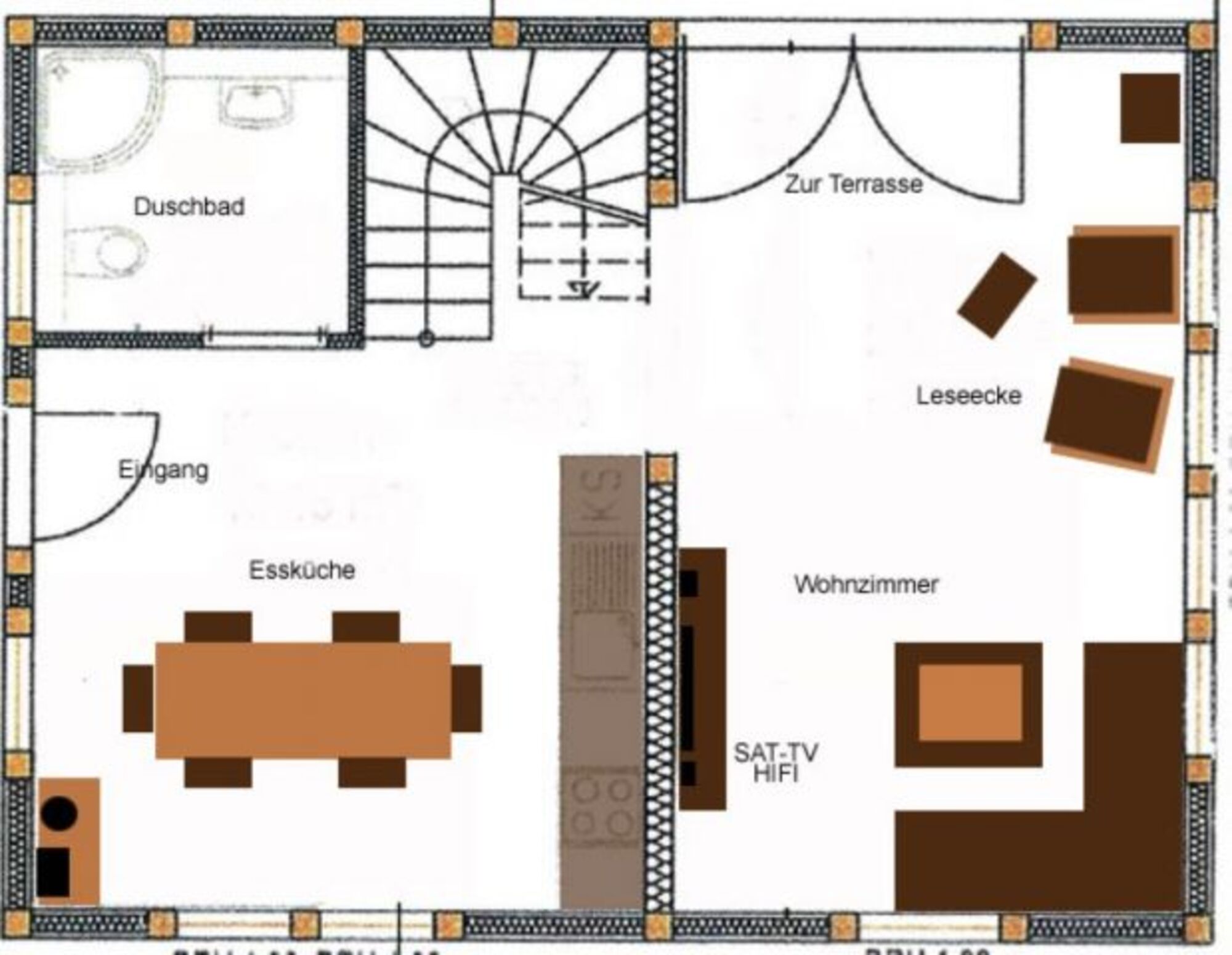 85qm Wohnfläche, eine ca 20qm große Terrasse mit südwest Ausrichtung sowie einer weiteren Terrasse inkl. Blockbohlenhaus unter einer große Pappel stehen Naturliebhabern zur Verfügung.