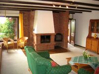 Im großen Wohnzimmer befindet sich ein Kamin. Als Esszimmer dient der große Wintergarten mit Platz für bis zu 12 Leute.