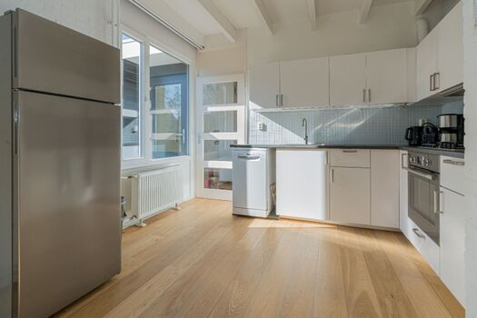 In der großzügig eingerichteten offenen Küche befinden sich unter anderem ein 4-Brenner-Gaskocher, eine Spülmaschine, ein Kühlschrank mit Gefrierfach, ein Backofen und ein Nespresso-Gerät.