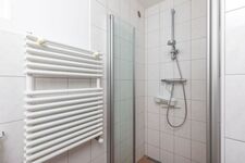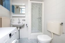 Das Hauptschlafzimmer befindet sich im Erdgeschoss und ist über das Wohnzimmer erreichbar. Dieses Schlafzimmer verfügt über zwei Boxspringbetten (90 x 200) und ausreichend Schränke. Durch den Flur gelangen Sie auch in die Badezimmer. Das erste ist mit einer Duschkabine, einem Waschbeckenschrank, einer Toilette und einer Waschmaschine versehen. Das zweite Badezimmer (neulich renoviert) hat eine begehbare Dusche und eine Toilette.