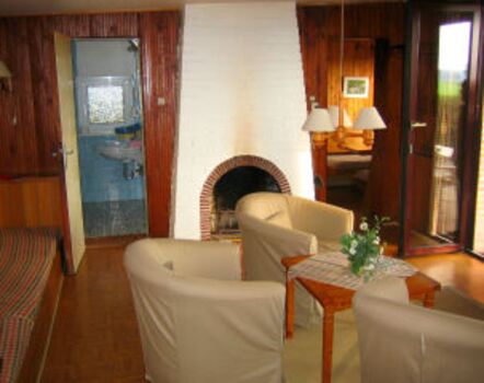 Unser Haus Nr. 1 - Kaminhäuschen - verfügt über ein Schlafzimmer mit 2 Betten und die beiden anderen Betten befinden sich im Wohnzimmer. Zusätzliche Kinderbetten sind kostenlos möglich und werden auf Wunsch gerne von uns gestellt.