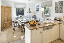 Vom Wohnzimmer aus gelangen Sie in den großen Garten mit Strandkorb, Tischtennisplatte - und Gartenmöbeln. Vom Gartentor aus erreichen Sie den 30 Meter entfernten Oststrand. Im Erdgeschoss lädt Sie der Wohn-/Essbereich mit offener Küche für gemeinsame Stunden ein. (Der Kaminofen ist derzeit außer Betrieb.) Ebenfalls im Erdgeschoss befindet sich ein Schlafzimmer und ein Bad. Im ersten Stock liegen drei weitere Schlafräume, jeweils mit Doppelbett und ein Bad mit Badewanne. Eine Waschmaschine steht zur Verfügung. Unser Service vor Ort rundet Ihren Urlaub ab. Rufen Sie uns an, damit Sie in jeder Jahreszeit Ihren wohlverdienten Urlaub im Haus "Nordmeer" verbringen können.