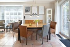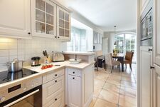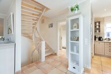Ein exklusives, reetgedecktes Haus mit Doppelgarage in sonnenverwöhnter Lage erwartet sie. Sie haben ein großes Wohnzimmer mit Übergang zum Esszimmer mit angeschlossener Küche. Über die gesamte Breite von Ess- und Wohnzimmer können Sie die Türen zur Sonnenterrasse öffnen. Im Obergeschoss befinden sich Ihre Schlafzimmer. Alle Schlafzimmer sind mit Bad en Suite. Das große Schlafzimmer im ersten Stock hat eine zusätzliche Sonnenterrasse mit Strandkorb. Zwei Schlafzimmer haben begehbare Kleiderschränke. Ein exklusives und gemütliches Feriendomizil wartet auf Sie. Das Meer ist 250 Meter vom Haus entfernt.