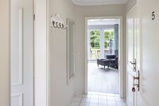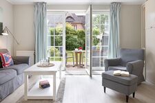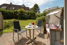 Helles Appartement mit kleiner Terrasse und Strandkorb im Erdgeschoss
