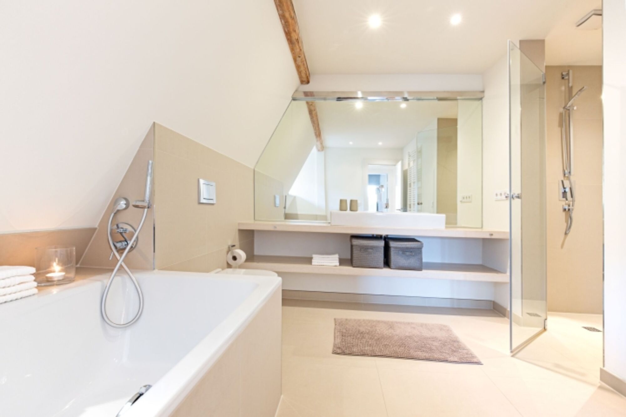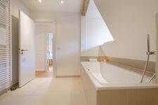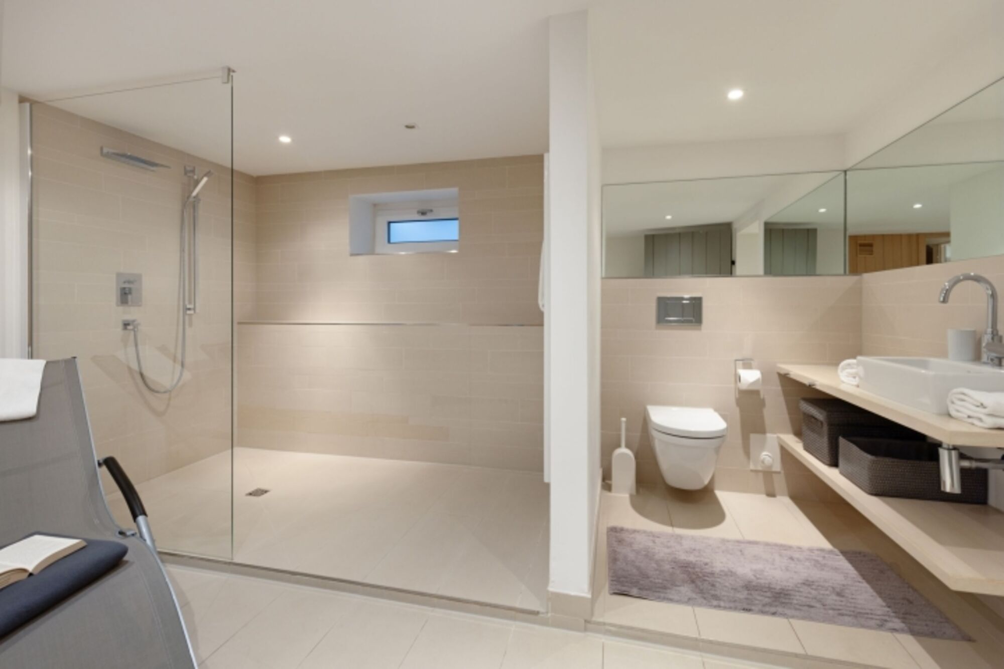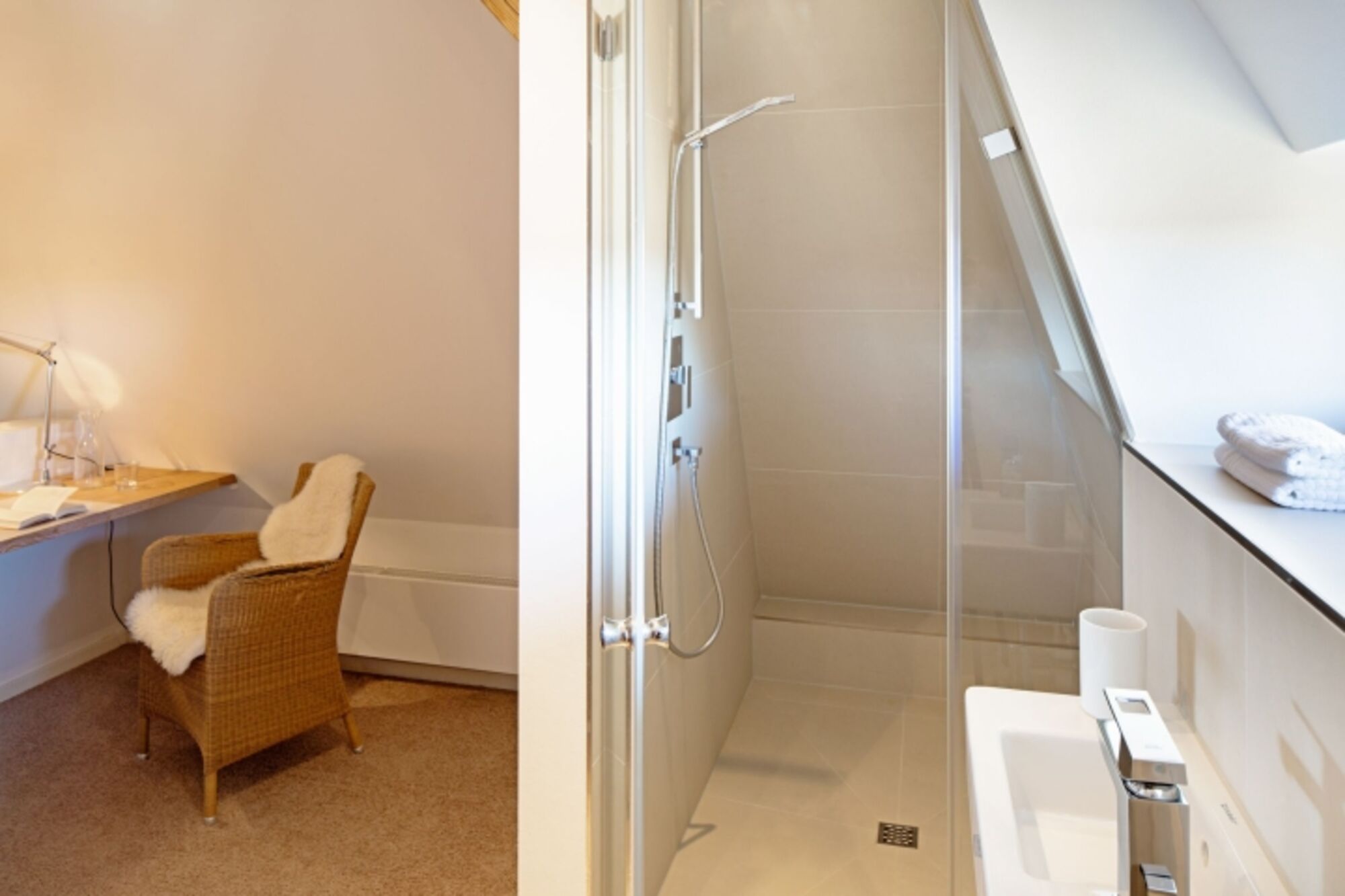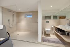 In den Badezimmern sind hochwertige Materialien verarbeitet worden. Alle Duschen sind 'Go in' Duschen mit Kopfbrausen.