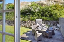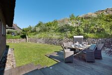 Ein gepflegter Garten, mit Terrasse, lädt zum Relaxen in der Dünenlandschaft ein.
