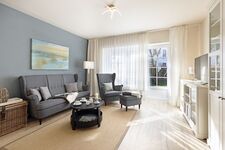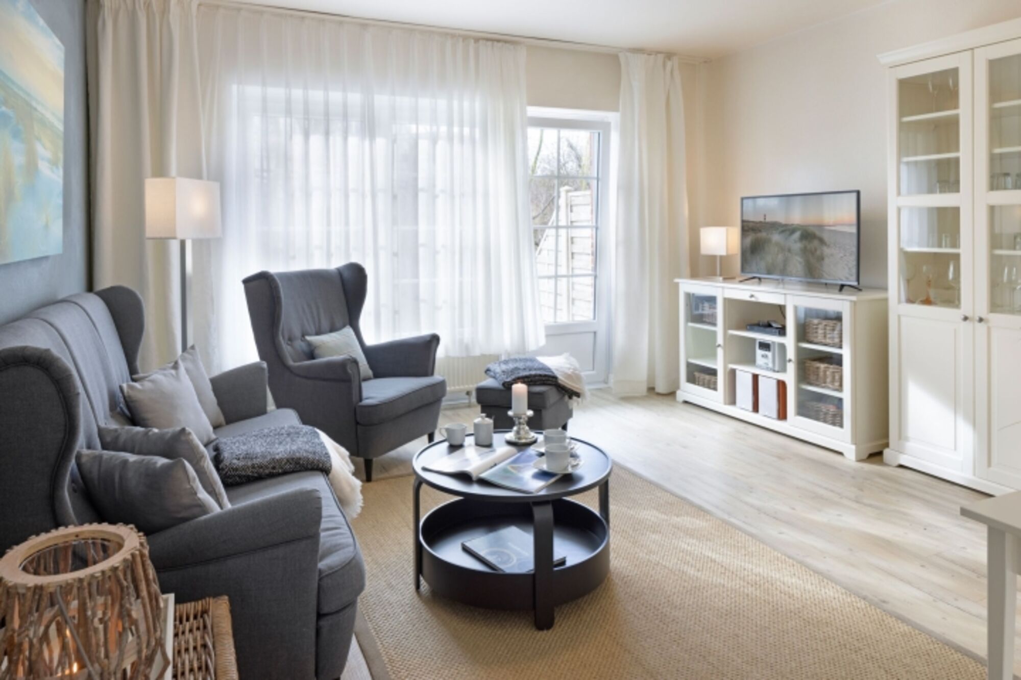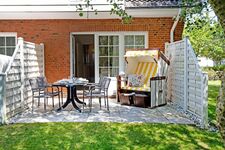 Helles Appartement mit kleiner Terrasse und Strandkorb im Erdgeschoss