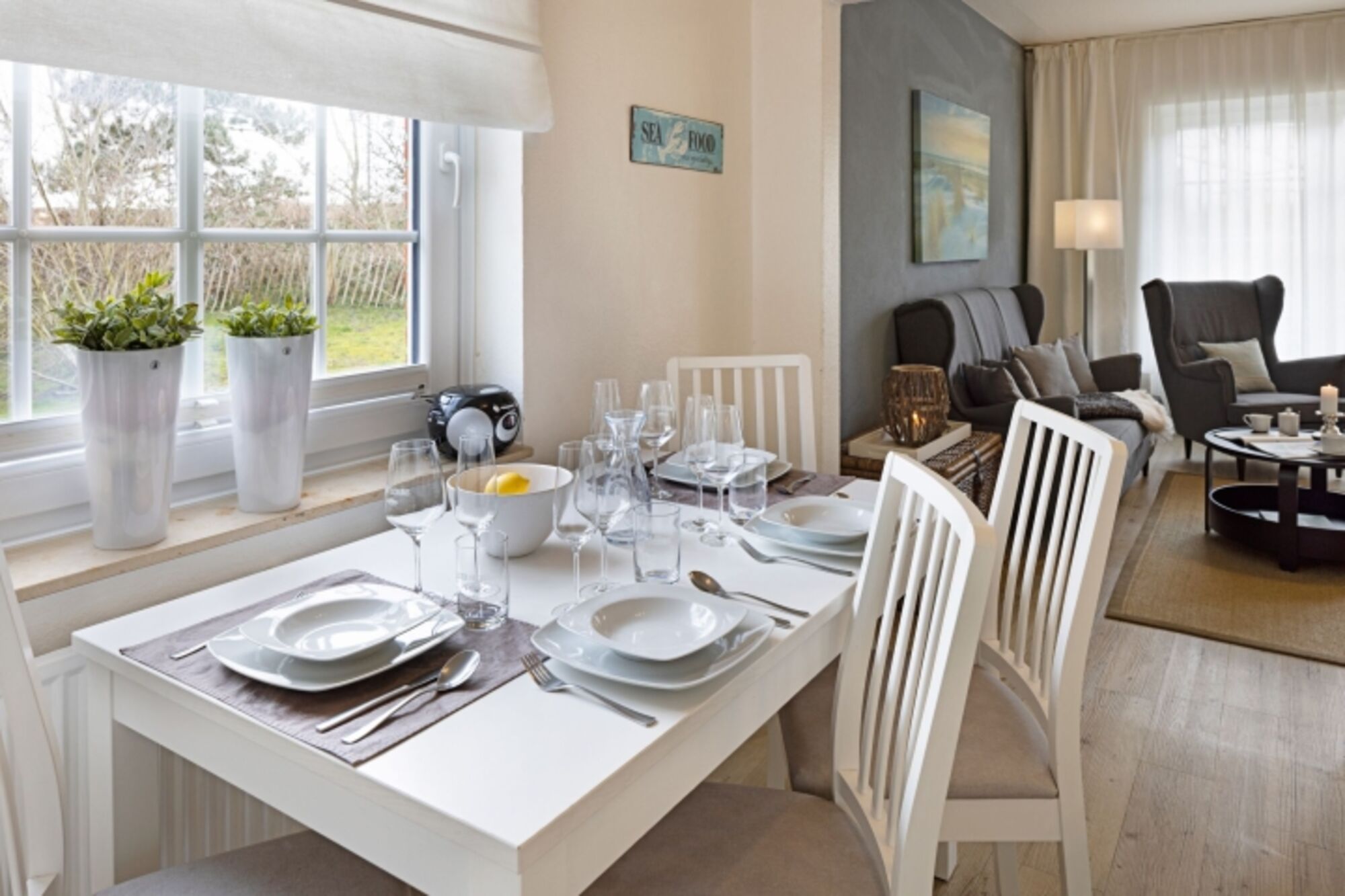 Das liebevoll ausgestattete Appartement Friesenkoje erwartet Sie. Das Feriendomizil liegt auf zwei Ebenen. Im Erdgeschoss finden Sie ein Zimmer mit Etagenbett, das auch für Erwachsene geeignet ist. Das wunderschöne Wohnzimmer mit angrenzender Küche und Essbereich, von dem aus sie einen Blick ins Grüne haben, bietet Platz für bis zu vier Personen.