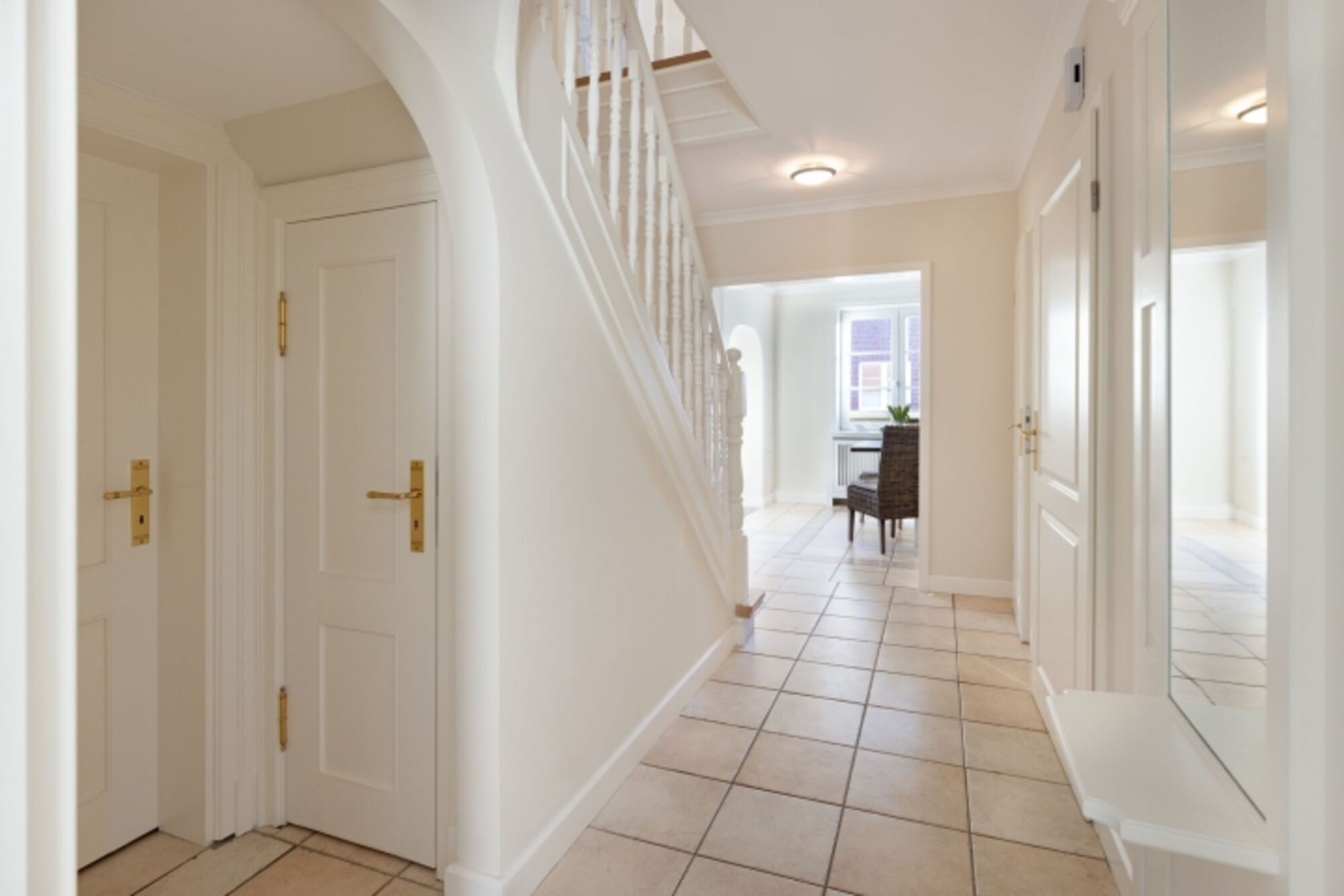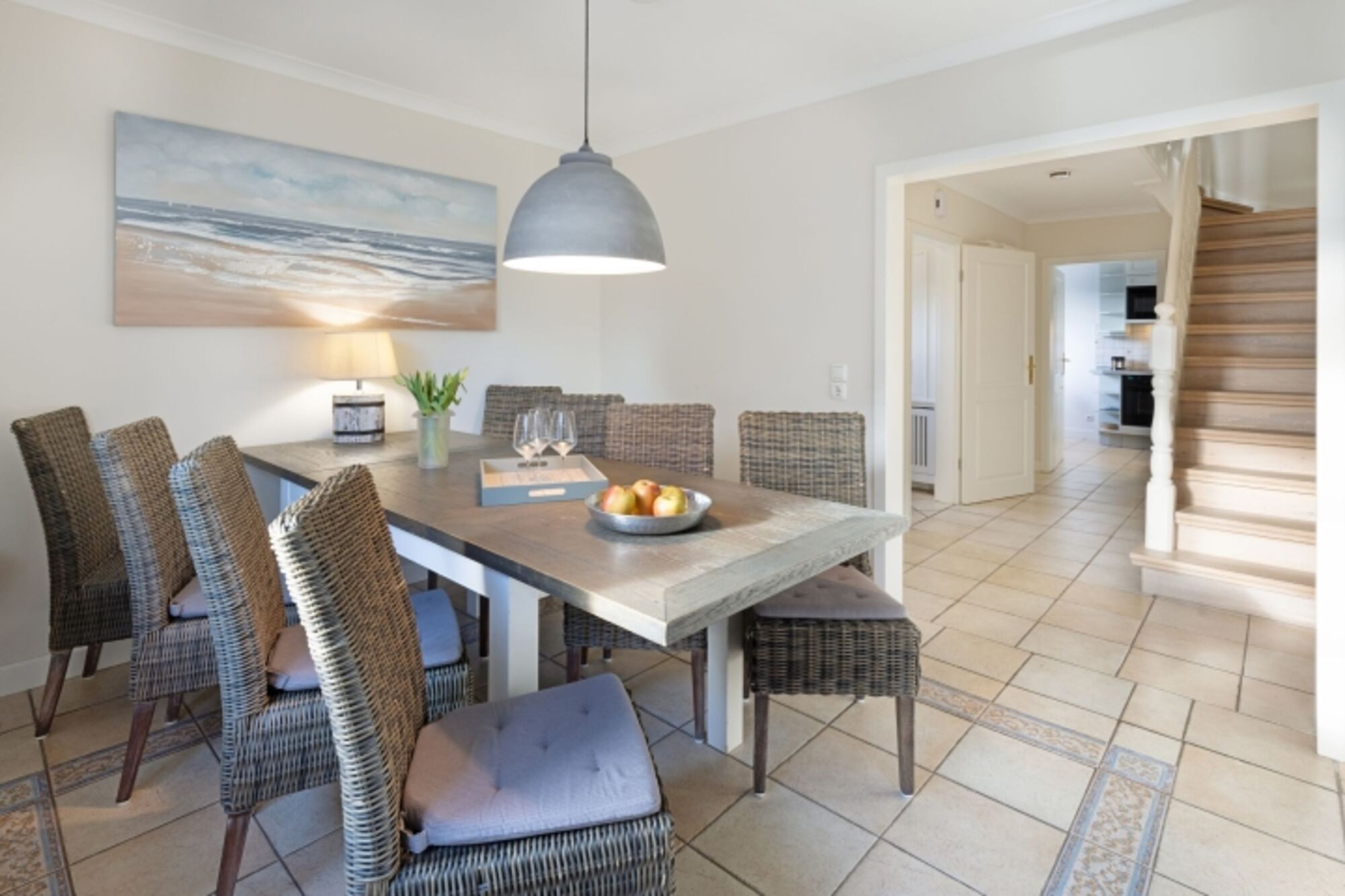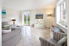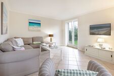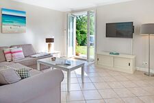 Helles Appartement mit kleiner Terrasse und Strandkorb im Erdgeschoss