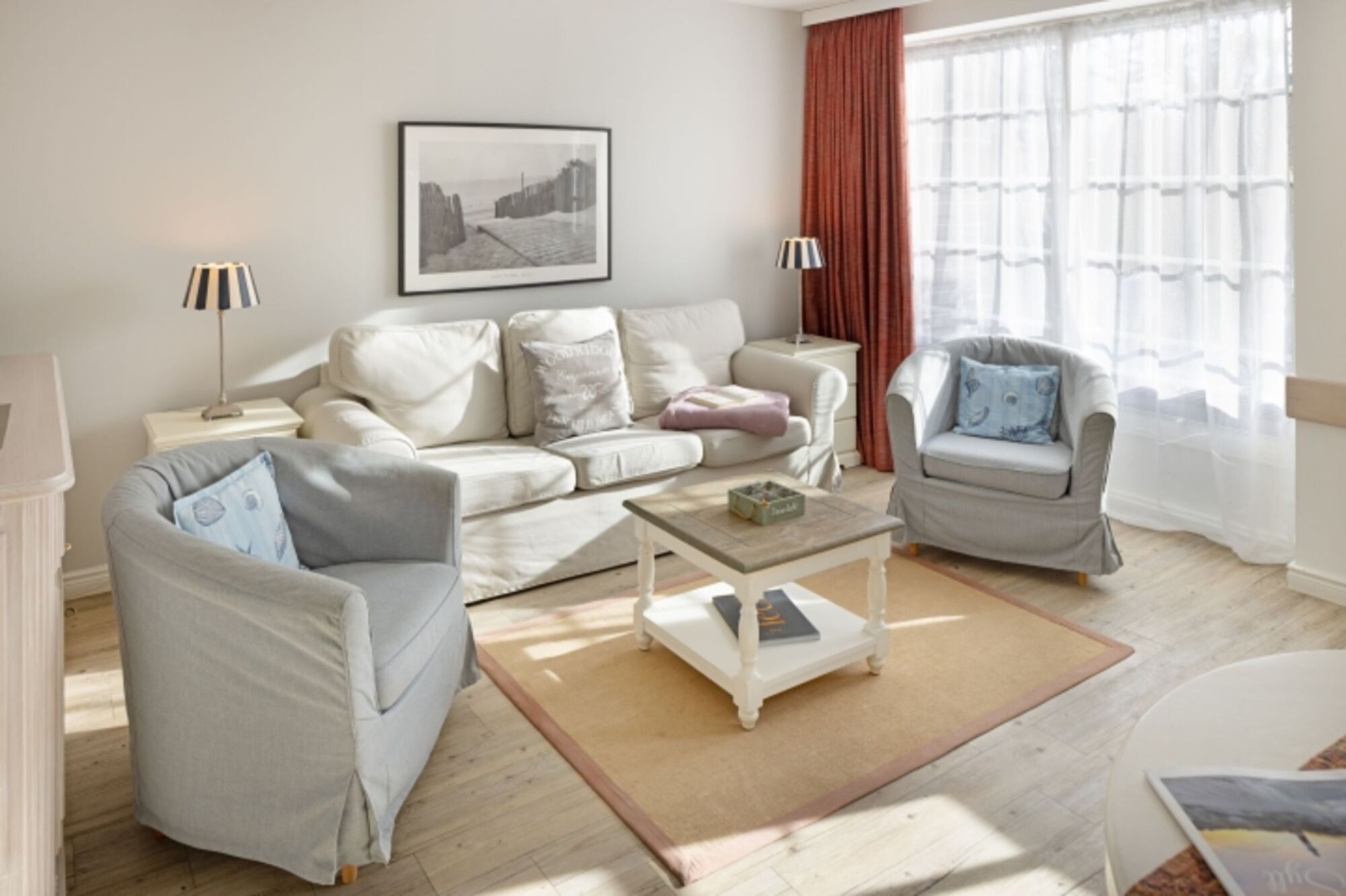 Das maritim anmutende Appartement "Deichvogt" (45m²) erwartet Sie.