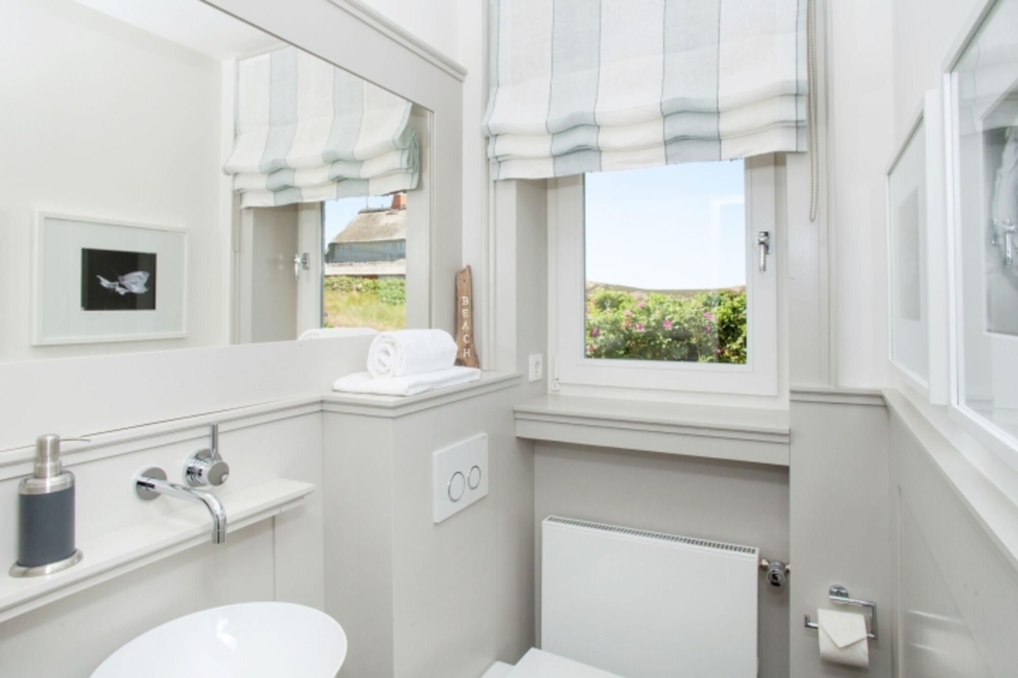 Durch die großen Panorama-Fenster können Sie Ihren Blick über das Wattenmeer schweifen lassen. Neben dem Duschbad und dem extra Gäste-WC steht Ihnen im EG eine eigene kleine Sauna zur Verfügung. Der weite Garten mit Terrasse ist mit Gartenmöbeln und zwei Strandkörben (saisonal begrenzt) ausgestattet. Mehr Meerblick geht nicht... Grillen und offenes Feuer sind im Garten und anliegendem Gelände streng verboten. Sie wohnen in einem reetgedeckten Ferienhaus.