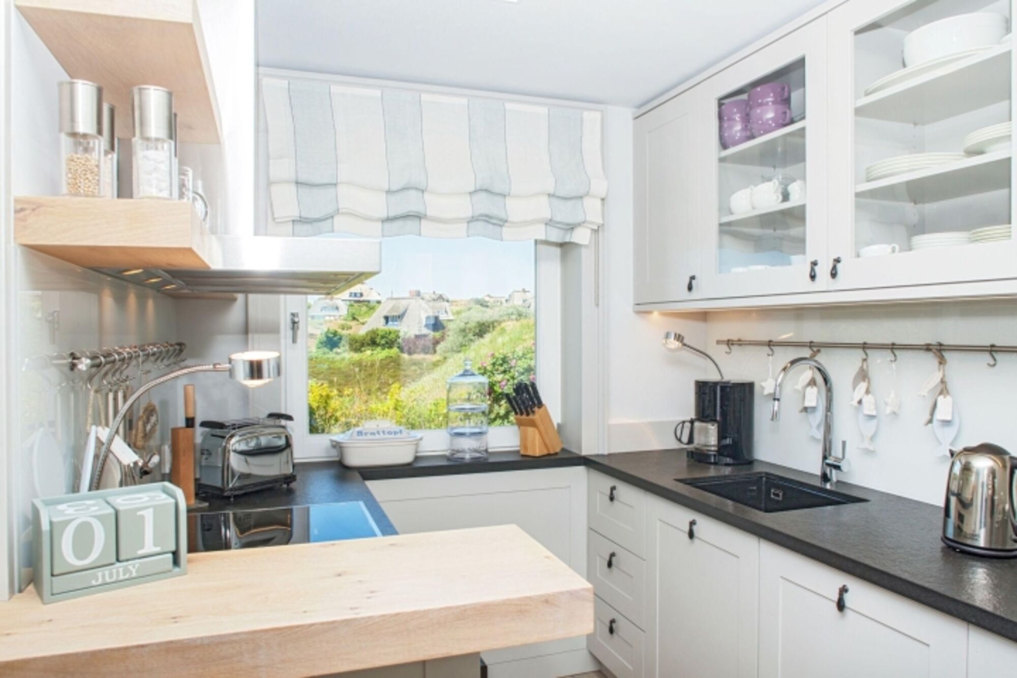 Modernes Ferienreihenhaus unter Reet mit Kamin und großem Garten