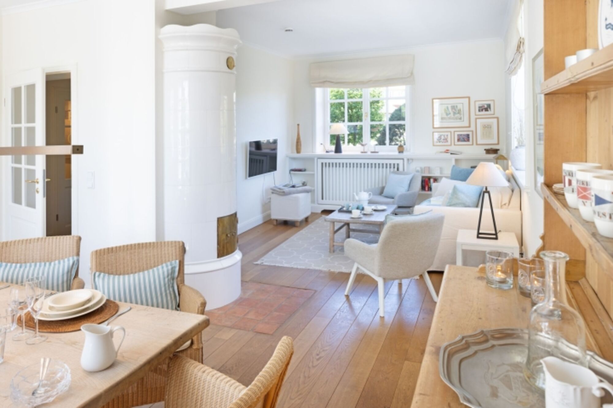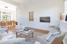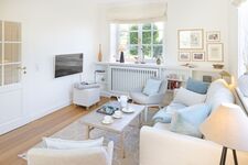 Helles Appartement mit kleiner Terrasse und Strandkorb im Erdgeschoss