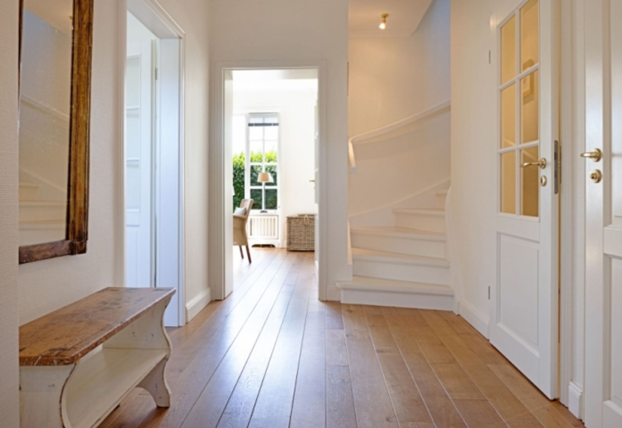 Die großzügige Terrasse ist nach Osten hin ausgerichtet. In das 1 Obergeschoss oder ins behagliche Souterrain führt Sie eine geschlossene Holztreppe.