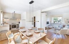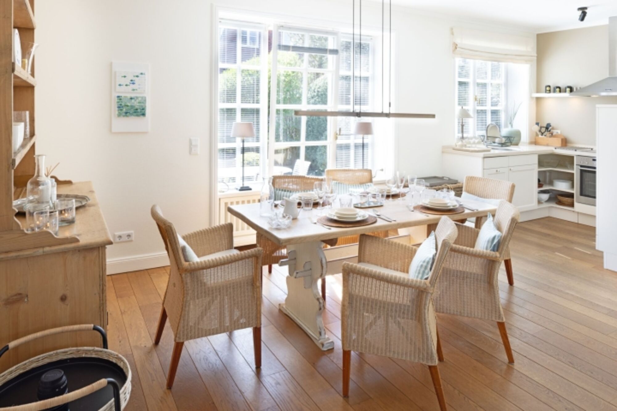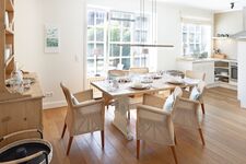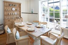 Stilvoll eingerichtet, finden Sie im Erdgeschoss des Ferienhauses vom Wohn-/Esszimmer mit Kamin bis zur offenen, gut ausgestatteten Küche, Gäste WC und einen Terrassenzugang. Alles was man zum Wohlfühlen benötigt.