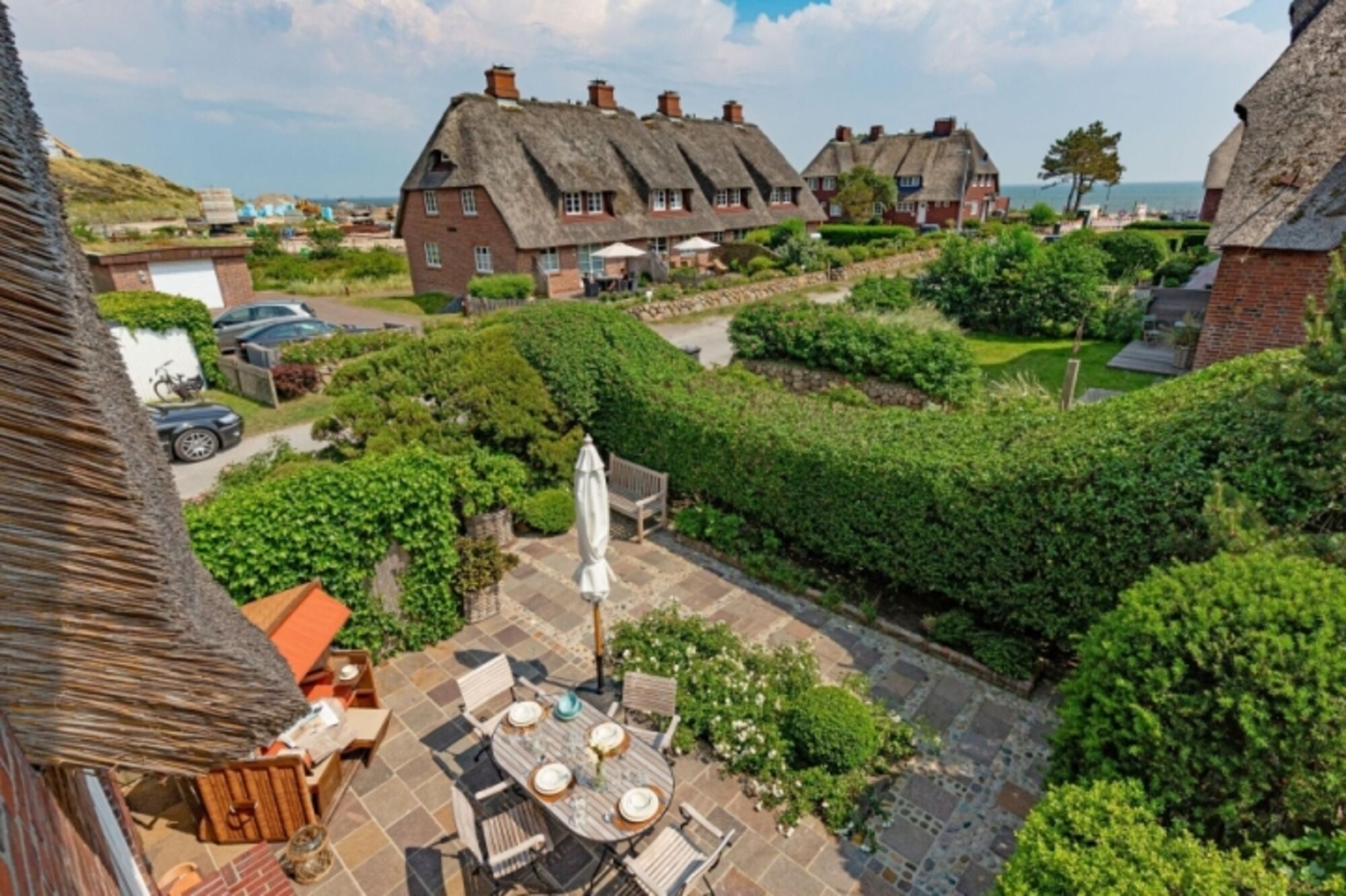 Modernes Feriendoppelhaus unter Reet mit unverbautem Meerblick