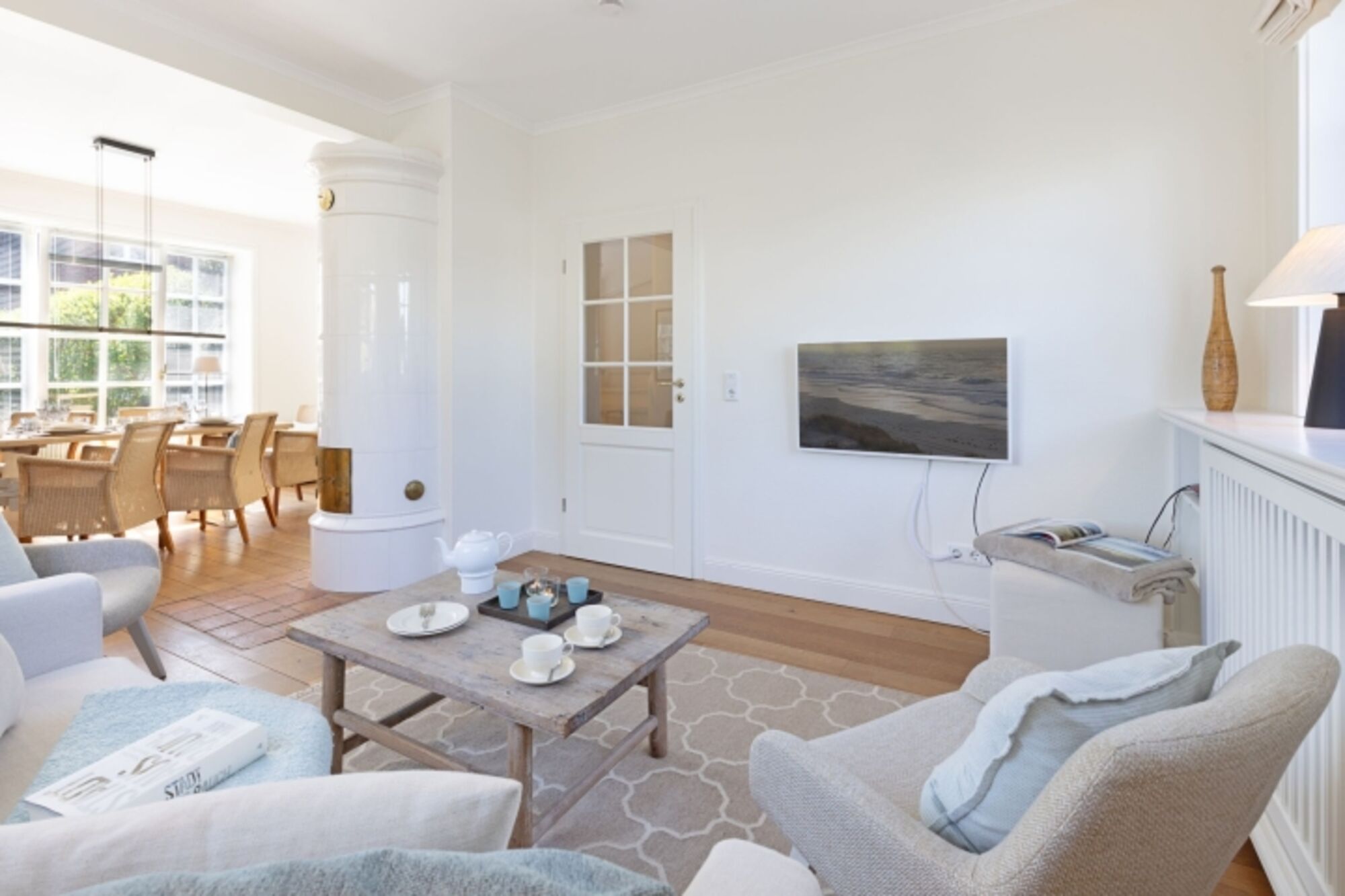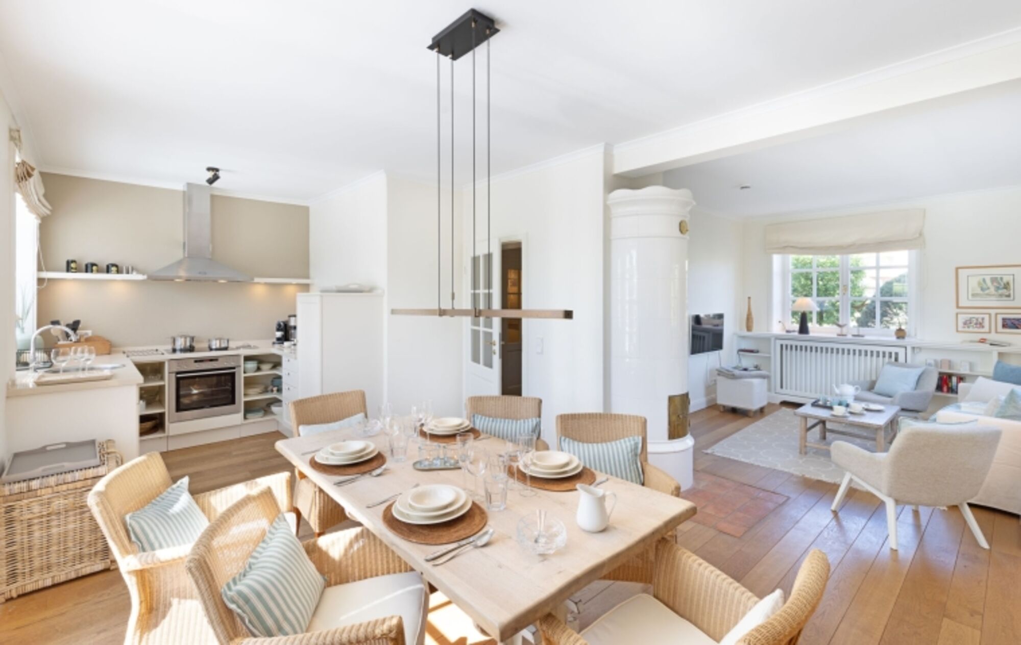 Die 140 m2 große Doppelhaushälfte unter Reet bietet Platz für bis zu vier Personen.