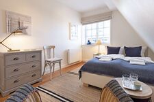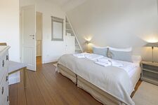 Im 1 Obergeschoss angekommen, unterteilt sich dies in zwei komfortable Schlafzimmer mit Doppelbetten sowie ein Badezimmer mit Dusche.